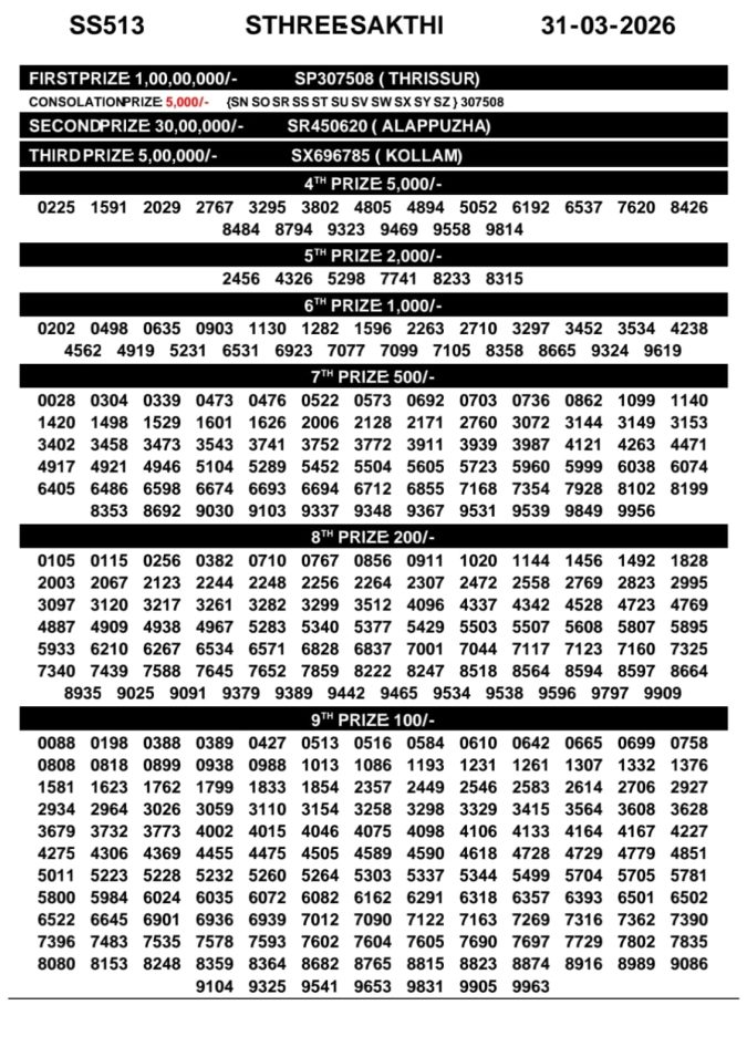 Sikkim State Dear Lottery 6PM Result Today [31-03-2026]