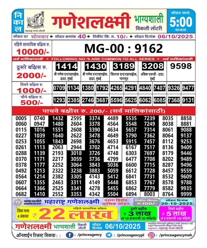 06 october 2025 9 pm – Goa state Rajshree lotteries 9 pm Result has been declared for…