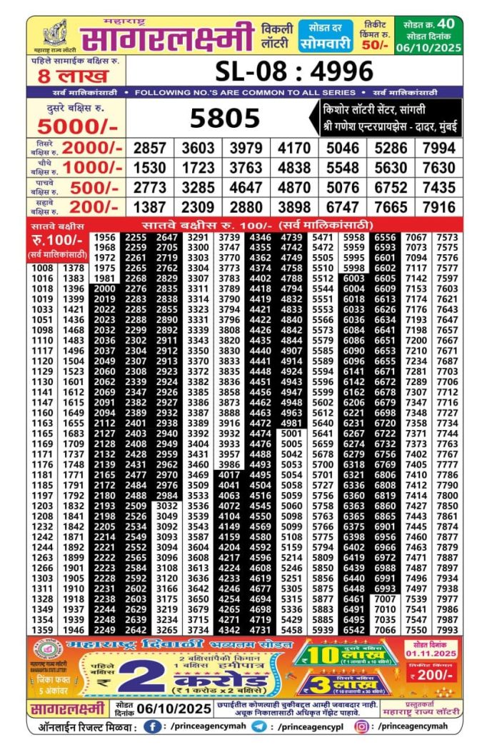 Maharashtra Lottery Result Today 4.15 PM (06-10-2025)