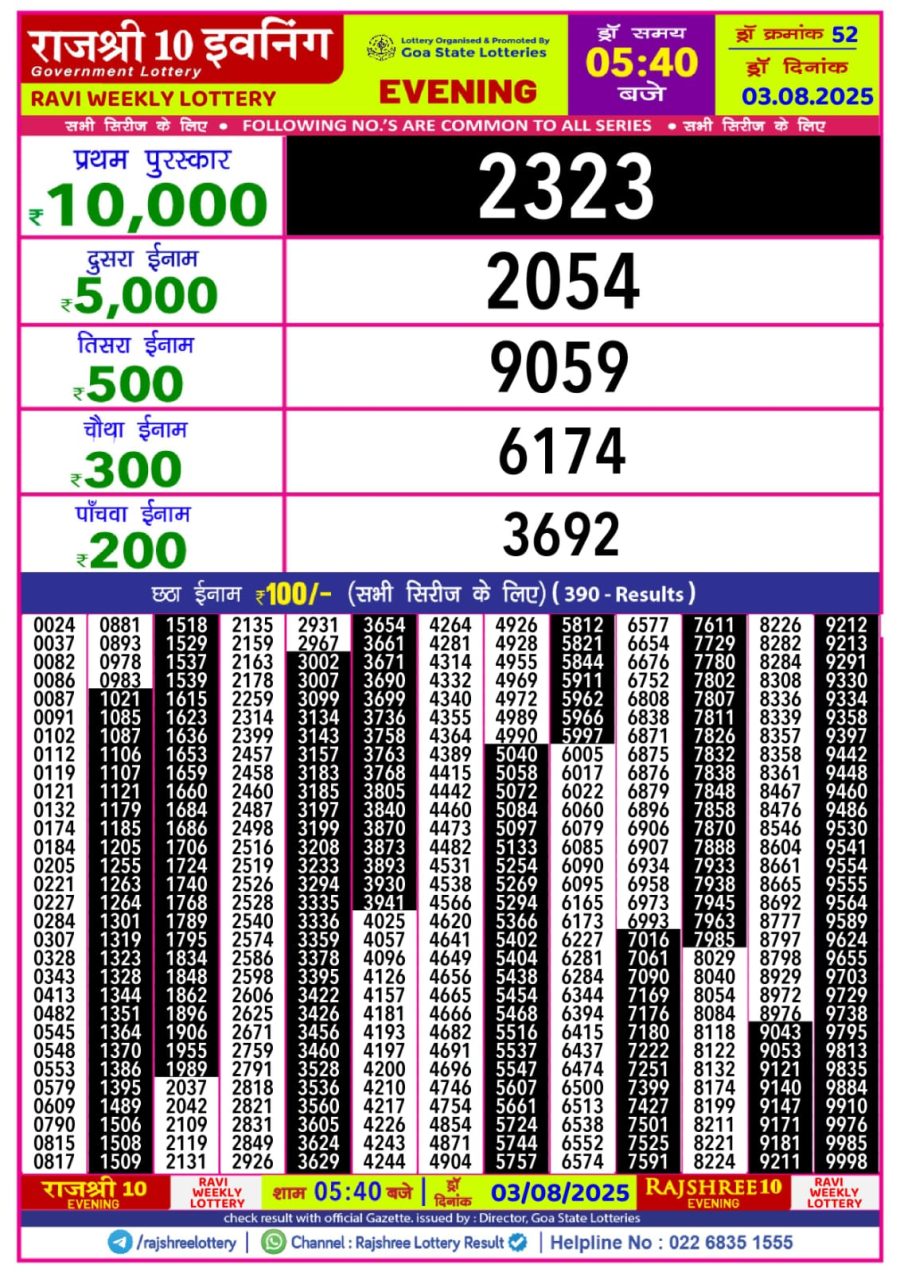 Goa Rajshree 10 Evening Lottery Result Today 5:40 PM (03-08-2025) Leave a Comment on Goa Rajshree 10 Evening Lottery Result Today 5:40 PM (03-08-2025) Posted in Lottery Sambad Results Share: TwitterFacebookPinterestRedditVKDiggLinkedinMix Related Results 0 9 Punjab State Dear 50 Lottery Result Today 6 PM (14-10-2025) Punjab State Dear 50 Lottery Result Today 6 PM (14-10-2025) Punjab State Dear 50 Lottery Result Today 6 PM (14-10-2025) Punjab State Dear 50 Lottery Result Today 6 PM (14-10-2025) Punjab State Dear 50 Lottery Result Today 6 PM (14-10-2025) 0 93 Mizoram State Rajshree Lottery Result Today 1 PM 5-05-2025 Mizoram State Rajshree Lottery Result Today 1 PM 5-05-2025 Mizoram State Rajshree Lottery Result Today 1 PM 5-05-2025 Mizoram State Rajshree Lottery Result Today 1 PM 5-05-2025 Mizoram State Rajshree Lottery Result Today 1 PM 5-05-2025 0 63 Maharashtra Gaj Laxmi Lottery Result Today 4.45 PM 09-06-2025 Maharashtra Gaj Laxmi Lottery Result Today 4.45 PM 09-06-2025 Maharashtra Gaj Laxmi Lottery Result Today 4.45 PM 09-06-2025 Maharashtra Gaj Laxmi Lottery Result Today 4.45 PM 09-06-2025 Maharashtra Gaj Laxmi Lottery Result Today 4.45 PM 09-06-2025 0 77 Goa State Rajshree 30 Lottery Result Today 8.30 PM 09-06-2025 Goa State Rajshree 30 Lottery Result Today 8.30 PM 09-06-2025 Goa State Rajshree 30 Lottery Result Today 8.30 PM 09-06-2025 Goa State Rajshree 30 Lottery Result Today 8.30 PM 09-06-2025 Goa State Rajshree 30 Lottery Result Today 8.30 PM 09-06-2025