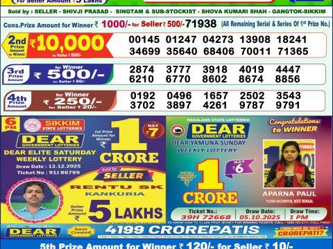 Goa Rajshree 10 Evening Lottery Result Today 5:40 PM (04-11-2025)