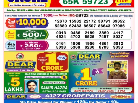 Goa Rajshree 30 Lottery Result Today 8:30 PM (05-10-2025) Leave a Comment on Goa Rajshree 30 Lottery Result Today 8:30 PM (05-10-2025) Posted in Lottery Sambad Results Share: TwitterFacebookPinterestRedditVKDiggLinkedinMix Related Results 0 73 Nagaland Dear 50 Lottery Result Today 5 PM (04-07-2025) Nagaland Dear 50 Lottery Result Today 5 PM (04-07-2025) Nagaland Dear 50 Lottery Result Today 5 PM (04-07-2025) Nagaland Dear 50 Lottery Result Today 5 PM (04-07-2025) Nagaland Dear 50 Lottery Result Today 5 PM (04-07-2025) 0 14 Nagaland Dear Lottery Result Today 8 PM (04-11-2025) Nagaland Dear Lottery Result Today 8 PM (04-11-2025) Nagaland Dear Lottery Result Today 8 PM (04-11-2025) Nagaland Dear Lottery Result Today 8 PM (04-11-2025) Nagaland Dear Lottery Result Today 8 PM (04-11-2025) 0 97 Maharashtra Lottery Result Today 4 PM 14-05-2025 Maharashtra Lottery Result Today 4 PM 14-05-2025 Maharashtra Lottery Result Today 4 PM 14-05-2025 Maharashtra Lottery Result Today 4 PM 14-05-2025 Maharashtra Lottery Result Today 4 PM 14-05-2025 0 118 Sikkim State Dear 10 Lottery Result Today 7 PM 28-04-2025 Sikkim State Dear 10 Lottery Result Today 7 PM 28-04-2025 Sikkim State Dear 10 Lottery Result Today 7 PM 28-04-2025 Sikkim State Dear 10 Lottery Result Today 7 PM 28-04-2025 Sikkim State Dear 10 Lottery Result Today 7 PM 28-04-2025