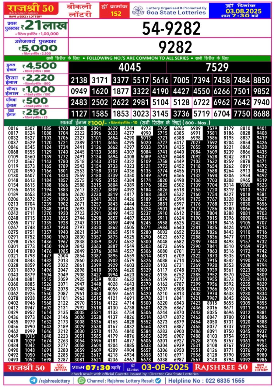 Goa Rajshree 50 Lottery Result Today 7:30 PM (03-08-2025) Leave a Comment on Goa Rajshree 50 Lottery Result Today 7:30 PM (03-08-2025) Posted in Lottery Sambad Results Share: TwitterFacebookPinterestRedditVKDiggLinkedinMix Related Results 0 67 Maharashtra Sahyadari Lottery Result Today 4.30 PM 07-06-2025 Maharashtra Sahyadari Lottery Result Today 4.30 PM 07-06-2025 Maharashtra Sahyadari Lottery Result Today 4.30 PM 07-06-2025 Maharashtra Sahyadari Lottery Result Today 4.30 PM 07-06-2025 Maharashtra Sahyadari Lottery Result Today 4.30 PM 07-06-2025 0 15 Nagaland Dear Lottery Result Today 1 PM (24-09-2025) Nagaland Dear Lottery Result Today 1 PM (24-09-2025) Nagaland Dear Lottery Result Today 1 PM (24-09-2025) Nagaland Dear Lottery Result Today 1 PM (24-09-2025) Nagaland Dear Lottery Result Today 1 PM (24-09-2025) 0 188 Goa State Rajshree 10 Evening Lottery Result Today 5.40 PM 01-06-2025 Goa State Rajshree 10 Evening Lottery Result Today 5.40 PM 01-06-2025 Goa State Rajshree 10 Evening Lottery Result Today 5.40 PM 01-06-2025 Goa State Rajshree 10 Evening Lottery Result Today 5.40 PM 01-06-2025 Goa State Rajshree 10 Evening Lottery Result Today 5.40 PM 01-06-2025 0 42 Goa Rajshree 10 Evening Lottery Result Today 5:40 PM (07-08-2025) Goa Rajshree 10 Evening Lottery Result Today 5:40 PM (07-08-2025) Goa Rajshree 10 Evening Lottery Result Today 5:40 PM (07-08-2025) Goa Rajshree 10 Evening Lottery Result Today 5:40 PM (07-08-2025) Goa Rajshree 10 Evening Lottery Result Today 5:40 PM (07-08-2025)