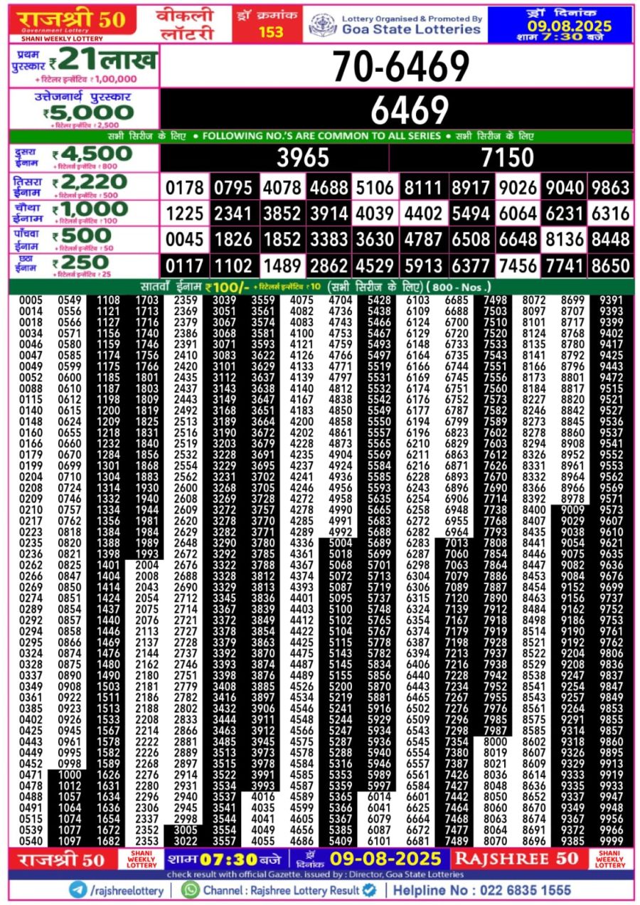 Goa Rajshree 50 Lottery Result Today 7:30 PM (09-08-2025) Leave a Comment on Goa Rajshree 50 Lottery Result Today 7:30 PM (09-08-2025) Posted in Lottery Sambad Results Share: TwitterFacebookPinterestRedditVKDiggLinkedinMix Related Results 0 61 Goa Rajshree 50 Lottery Result Today 7:30 PM (14-07-2025) Goa Rajshree 50 Lottery Result Today 7:30 PM (14-07-2025) Goa Rajshree 50 Lottery Result Today 7:30 PM (14-07-2025) Goa Rajshree 50 Lottery Result Today 7:30 PM (14-07-2025) Goa Rajshree 50 Lottery Result Today 7:30 PM (14-07-2025) 0 48 Punjab Dear 10 Lottery Result Today 6 PM (27-07-2025) Punjab Dear 10 Lottery Result Today 6 PM (27-07-2025) Punjab Dear 10 Lottery Result Today 6 PM (27-07-2025) Punjab Dear 10 Lottery Result Today 6 PM (27-07-2025) Punjab Dear 10 Lottery Result Today 6 PM (27-07-2025) 0 74 Nagaland State Super Lottery Result Today 7 PM 15-06-2025 Nagaland State Super Lottery Result Today 7 PM 15-06-2025 Nagaland State Super Lottery Result Today 7 PM 15-06-2025 Nagaland State Super Lottery Result Today 7 PM 15-06-2025 Nagaland State Super Lottery Result Today 7 PM 15-06-2025 0 11 Goa Rajshree 50 Lottery Result Today 7:30 PM (13-10-2025) Goa Rajshree 50 Lottery Result Today 7:30 PM (13-10-2025) Goa Rajshree 50 Lottery Result Today 7:30 PM (13-10-2025) Goa Rajshree 50 Lottery Result Today 7:30 PM (13-10-2025) Goa Rajshree 50 Lottery Result Today 7:30 PM (13-10-2025)