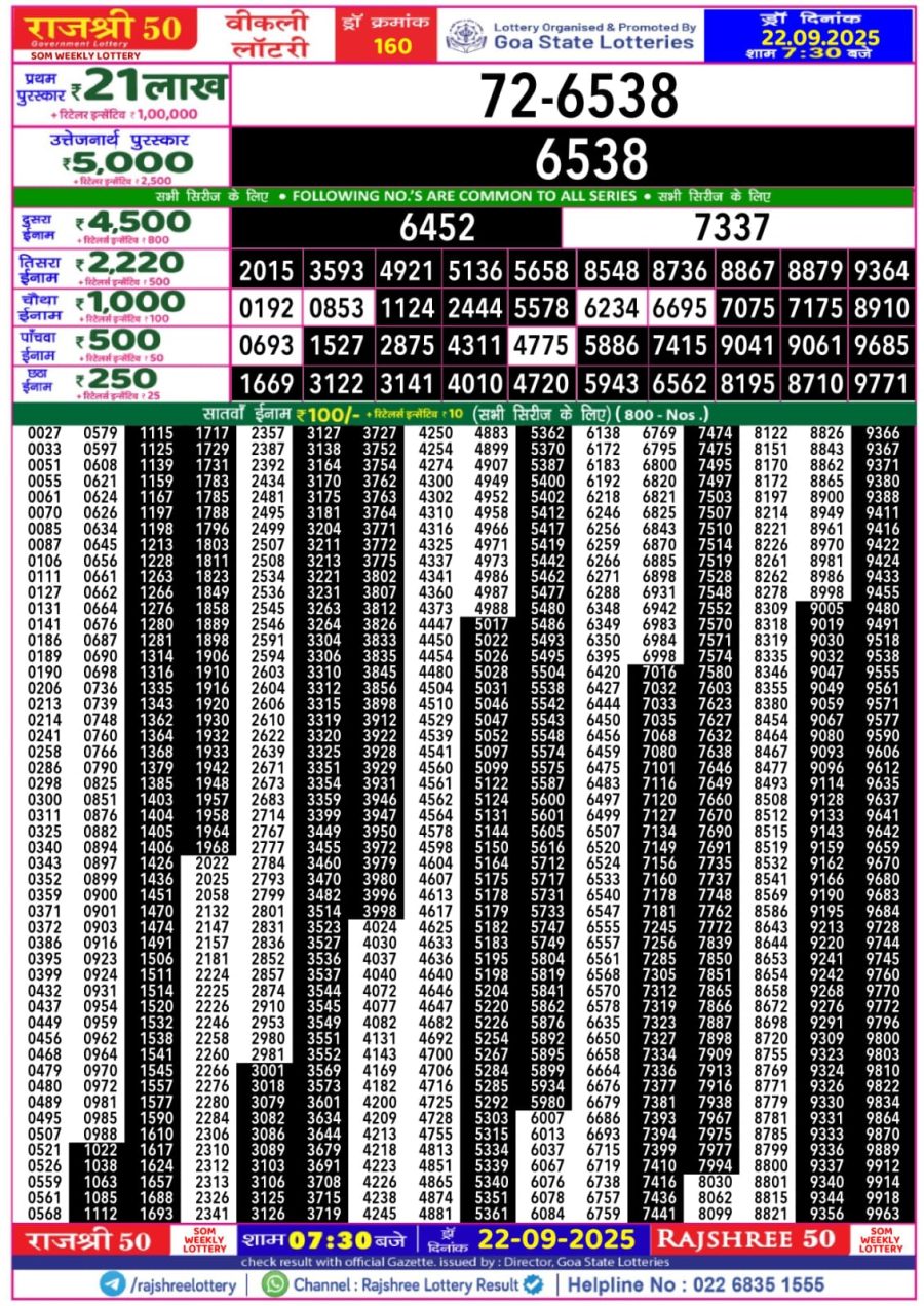 Goa Rajshree 50 Lottery Result Today 7:30 PM (22-09-2025) Leave a Comment on Goa Rajshree 50 Lottery Result Today 7:30 PM (22-09-2025) Posted in Lottery Sambad Results Share: TwitterFacebookPinterestRedditVKDiggLinkedinMix Related Results 0 70 Goa State Rajshree 30 Lottery Result Today 8.30 PM 14-06-2025 Goa State Rajshree 30 Lottery Result Today 8.30 PM 14-06-2025 Goa State Rajshree 30 Lottery Result Today 8.30 PM 14-06-2025 Goa State Rajshree 30 Lottery Result Today 8.30 PM 14-06-2025 Goa State Rajshree 30 Lottery Result Today 8.30 PM 14-06-2025 0 55 Punjab Dear 10 Lottery Result Today 6 PM (07-07-2025) Punjab Dear 10 Lottery Result Today 6 PM (07-07-2025) Punjab Dear 10 Lottery Result Today 6 PM (07-07-2025) Punjab Dear 10 Lottery Result Today 6 PM (07-07-2025) Punjab Dear 10 Lottery Result Today 6 PM (07-07-2025) 0 26 Goa Rajshree 50 Lottery Result Today 7:30 PM (26-09-2025) Goa Rajshree 50 Lottery Result Today 7:30 PM (26-09-2025) Goa Rajshree 50 Lottery Result Today 7:30 PM (26-09-2025) Goa Rajshree 50 Lottery Result Today 7:30 PM (26-09-2025) Goa Rajshree 50 Lottery Result Today 7:30 PM (26-09-2025) 0 59 Sikkim Dear Lottery Result Today 6 PM (14-07-2025) Sikkim Dear Lottery Result Today 6 PM (14-07-2025) Sikkim Dear Lottery Result Today 6 PM (14-07-2025) Sikkim Dear Lottery Result Today 6 PM (14-07-2025) Sikkim Dear Lottery Result Today 6 PM (14-07-2025)
