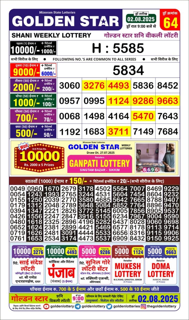 Golden Star Lottery Result Today 9 PM (02-08-2025) Leave a Comment on Golden Star Lottery Result Today 9 PM (02-08-2025) Posted in Lottery Sambad Results Share: TwitterFacebookPinterestRedditVKDiggLinkedinMix Related Results 0 49 Arunachal Dear 10 Lottery Result Today 1:30 PM (23-07-2025) Arunachal Dear 10 Lottery Result Today 1:30 PM (23-07-2025) Arunachal Dear 10 Lottery Result Today 1:30 PM (23-07-2025) Arunachal Dear 10 Lottery Result Today 1:30 PM (23-07-2025) Arunachal Dear 10 Lottery Result Today 1:30 PM (23-07-2025) 0 90 Nagaland State Dear Lottery Result Today 8 PM 3-05-2025 Nagaland State Dear Lottery Result Today 8 PM 3-05-2025 Nagaland State Dear Lottery Result Today 8 PM 3-05-2025 Nagaland State Dear Lottery Result Today 8 PM 3-05-2025 Nagaland State Dear Lottery Result Today 8 PM 3-05-2025 0 67 Nagaland State Super Lottery Result Today 7 PM 11-06-2025 Nagaland State Super Lottery Result Today 7 PM 11-06-2025 Nagaland State Super Lottery Result Today 7 PM 11-06-2025 Nagaland State Super Lottery Result Today 7 PM 11-06-2025 Nagaland State Super Lottery Result Today 7 PM 11-06-2025 0 57 Goa Rajshree 50 Lottery Result Today 7:30 PM (07-07-2025) Goa Rajshree 50 Lottery Result Today 7:30 PM (07-07-2025) Goa Rajshree 50 Lottery Result Today 7:30 PM (07-07-2025) Goa Rajshree 50 Lottery Result Today 7:30 PM (07-07-2025) Goa Rajshree 50 Lottery Result Today 7:30 PM (07-07-2025)