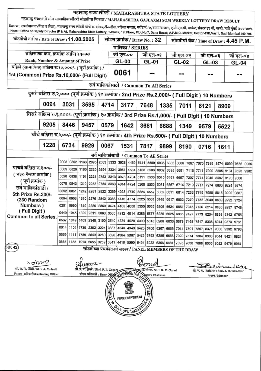Maharashtra Gajlaxmi Lottery Result Today 4.45 PM (11-08-2025) Leave a Comment on Maharashtra Gajlaxmi Lottery Result Today 4.45 PM (11-08-2025) Posted in Lottery Sambad Results Share: TwitterFacebookPinterestRedditVKDiggLinkedinMix Related Results 0 32 Mizoram Rajshree Lottery Result Today 4 PM (20-08-2025) Mizoram Rajshree Lottery Result Today 4 PM (20-08-2025) Mizoram Rajshree Lottery Result Today 4 PM (20-08-2025) Mizoram Rajshree Lottery Result Today 4 PM (20-08-2025) Mizoram Rajshree Lottery Result Today 4 PM (20-08-2025) 0 65 Arunachal Dear 10 Lottery Result Today 1:30 PM (29-06-2025) Arunachal Dear 10 Lottery Result Today 1:30 PM (29-06-2025) Arunachal Dear 10 Lottery Result Today 1:30 PM (29-06-2025) Arunachal Dear 10 Lottery Result Today 1:30 PM (29-06-2025) Arunachal Dear 10 Lottery Result Today 1:30 PM (29-06-2025) 0 33 Sikkim Labh Laxmi Lottery Result Today 4 PM (12-08-2025) Sikkim Labh Laxmi Lottery Result Today 4 PM (12-08-2025) Sikkim Labh Laxmi Lottery Result Today 4 PM (12-08-2025) Sikkim Labh Laxmi Lottery Result Today 4 PM (12-08-2025) Sikkim Labh Laxmi Lottery Result Today 4 PM (12-08-2025) 0 91 Mizoram State Rajshree Lottery Result Today 8 PM 02-06-2025 Mizoram State Rajshree Lottery Result Today 8 PM 02-06-2025 Mizoram State Rajshree Lottery Result Today 8 PM 02-06-2025 Mizoram State Rajshree Lottery Result Today 8 PM 02-06-2025 Mizoram State Rajshree Lottery Result Today 8 PM 02-06-2025