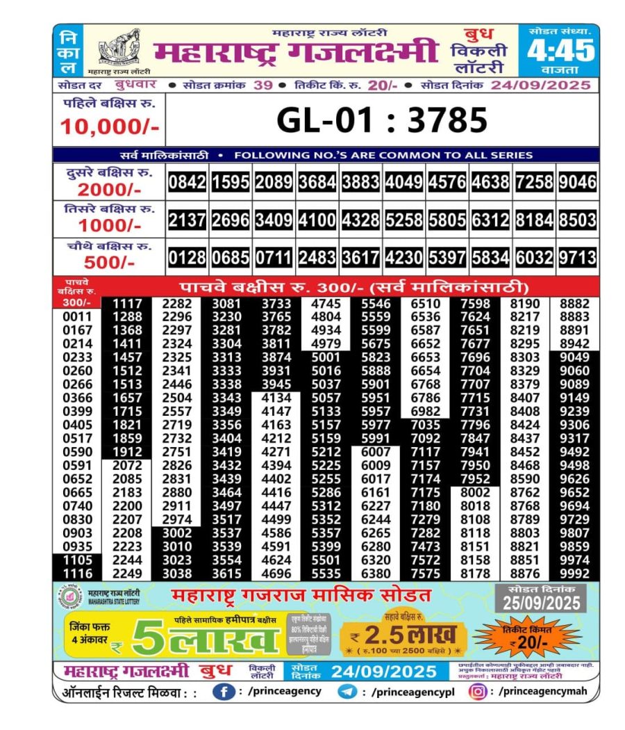 Maharashtra Gajlaxmi Lottery Result Today 4.45 PM (24-09-2025) Leave a Comment on Maharashtra Gajlaxmi Lottery Result Today 4.45 PM (24-09-2025) Posted in Lottery Sambad Results Share: TwitterFacebookPinterestRedditVKDiggLinkedinMix Related Results 0 56 Sikkim Dear Lottery Result Today 6 PM (16-07-2025) Sikkim Dear Lottery Result Today 6 PM (16-07-2025) Sikkim Dear Lottery Result Today 6 PM (16-07-2025) Sikkim Dear Lottery Result Today 6 PM (16-07-2025) Sikkim Dear Lottery Result Today 6 PM (16-07-2025) 0 29 Golden Star Lottery Result Today 9 PM (01-09-2025) Golden Star Lottery Result Today 9 PM (01-09-2025) Golden Star Lottery Result Today 9 PM (01-09-2025) Golden Star Lottery Result Today 9 PM (01-09-2025) Golden Star Lottery Result Today 9 PM (01-09-2025) 0 75 Nagaland State Dear Lottery Result Today 1 PM Declared 22-05-2025 Nagaland State Dear Lottery Result Today 1 PM Declared 22-05-2025 Nagaland State Dear Lottery Result Today 1 PM Declared 22-05-2025 Nagaland State Dear Lottery Result Today 1 PM Declared 22-05-2025 Nagaland State Dear Lottery Result Today 1 PM Declared 22-05-2025 0 18 Mizoram Rajshree Lottery Result Today 4 PM (19-09-2025) Mizoram Rajshree Lottery Result Today 4 PM (19-09-2025) Mizoram Rajshree Lottery Result Today 4 PM (19-09-2025) Mizoram Rajshree Lottery Result Today 4 PM (19-09-2025) Mizoram Rajshree Lottery Result Today 4 PM (19-09-2025)