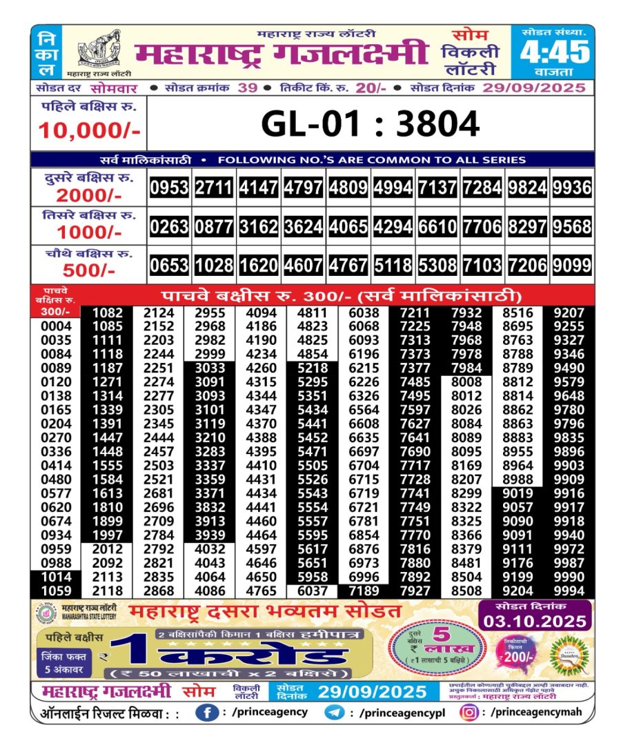 Maharashtra Gajlaxmi Lottery Result Today 4.45 PM (29-09-2025) Leave a Comment on Maharashtra Gajlaxmi Lottery Result Today 4.45 PM (29-09-2025) Posted in Lottery Sambad Results Share: TwitterFacebookPinterestRedditVKDiggLinkedinMix Related Results 0 96 Maharashtra Gaj Laxmi Lottery Result Today 4.45 PM 7-05-2025 Maharashtra Gaj Laxmi Lottery Result Today 4.45 PM 7-05-2025 Maharashtra Gaj Laxmi Lottery Result Today 4.45 PM 7-05-2025 Maharashtra Gaj Laxmi Lottery Result Today 4.45 PM 7-05-2025 Maharashtra Gaj Laxmi Lottery Result Today 4.45 PM 7-05-2025 0 52 Maharashtra Ganeshlaxmi Lottery Result Today 5 PM (09-07-2025) Maharashtra Ganeshlaxmi Lottery Result Today 5 PM (09-07-2025) Maharashtra Ganeshlaxmi Lottery Result Today 5 PM (09-07-2025) Maharashtra Ganeshlaxmi Lottery Result Today 5 PM (09-07-2025) Maharashtra Ganeshlaxmi Lottery Result Today 5 PM (09-07-2025) 0 25 Goa Rajshree 10 Evening Lottery Result Today 5:40 PM (07-09-2025) Goa Rajshree 10 Evening Lottery Result Today 5:40 PM (07-09-2025) Goa Rajshree 10 Evening Lottery Result Today 5:40 PM (07-09-2025) Goa Rajshree 10 Evening Lottery Result Today 5:40 PM (07-09-2025) Goa Rajshree 10 Evening Lottery Result Today 5:40 PM (07-09-2025) 0 86 Arunachal State Dear 10 Lottery Result Today 1.30 PM 5-05-2025 Arunachal State Dear 10 Lottery Result Today 1.30 PM 5-05-2025 Arunachal State Dear 10 Lottery Result Today 1.30 PM 5-05-2025 Arunachal State Dear 10 Lottery Result Today 1.30 PM 5-05-2025 Arunachal State Dear 10 Lottery Result Today 1.30 PM 5-05-2025