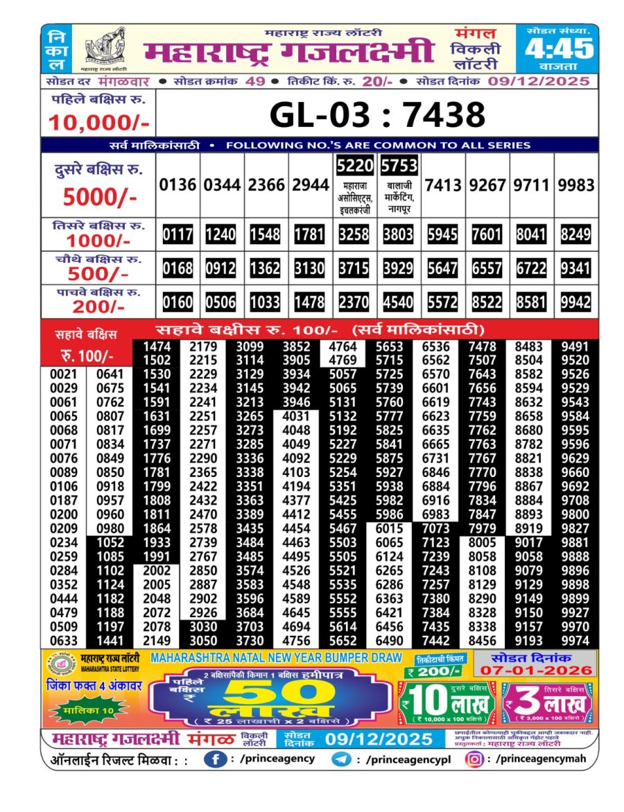 Maharashtra Gajlaxmi Lottery Result Today 4.45PM [09-12-2025] Leave a Comment on Maharashtra Gajlaxmi Lottery Result Today 4.45PM [09-12-2025] Posted in Lottery Sambad Results Share: TwitterFacebookPinterestRedditVKDiggLinkedinMix Related Results 0 15 Maharashtra Akshay Lottery Result Today 4.15PM [26-11-2025] Maharashtra Akshay Lottery Result Today 4.15PM [26-11-2025] Maharashtra Akshay Lottery Result Today 4.15PM [26-11-2025] Maharashtra Akshay Lottery Result Today 4.15PM [26-11-2025] Maharashtra Akshay Lottery Result Today 4.15PM [26-11-2025] 0 62 Golden Star Lottery Result Today 9 PM (14-08-2025) Golden Star Lottery Result Today 9 PM (14-08-2025) Golden Star Lottery Result Today 9 PM (14-08-2025) Golden Star Lottery Result Today 9 PM (14-08-2025) Golden Star Lottery Result Today 9 PM (14-08-2025) 0 98 Sikkim State Labh Laxmi Lottery Result Today 4 PM 17-05-2025 Sikkim State Labh Laxmi Lottery Result Today 4 PM 17-05-2025 Sikkim State Labh Laxmi Lottery Result Today 4 PM 17-05-2025 Sikkim State Labh Laxmi Lottery Result Today 4 PM 17-05-2025 Sikkim State Labh Laxmi Lottery Result Today 4 PM 17-05-2025 0 92 Mizoram State Rajshree Lottery Result Today 1 PM 08-06-2025 Mizoram State Rajshree Lottery Result Today 1 PM 08-06-2025 Mizoram State Rajshree Lottery Result Today 1 PM 08-06-2025 Mizoram State Rajshree Lottery Result Today 1 PM 08-06-2025 Mizoram State Rajshree Lottery Result Today 1 PM 08-06-2025