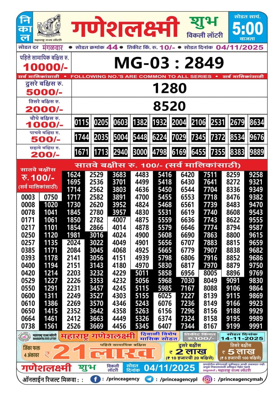 Maharashtra Ganeshlaxmi Lottery Result Today 5 PM (04-11-2025) Leave a Comment on Maharashtra Ganeshlaxmi Lottery Result Today 5 PM (04-11-2025) Posted in Lottery Sambad Results Share: TwitterFacebookPinterestRedditVKDiggLinkedinMix Related Results 0 53 Nagaland Dear Lottery Result Today 1 PM (14-08-2025) Nagaland Dear Lottery Result Today 1 PM (14-08-2025) Nagaland Dear Lottery Result Today 1 PM (14-08-2025) Nagaland Dear Lottery Result Today 1 PM (14-08-2025) Nagaland Dear Lottery Result Today 1 PM (14-08-2025) 0 38 Mizoram Rajshree Lottery Result Today 1 PM (16-09-2025) Mizoram Rajshree Lottery Result Today 1 PM (16-09-2025) Mizoram Rajshree Lottery Result Today 1 PM (16-09-2025) Mizoram Rajshree Lottery Result Today 1 PM (16-09-2025) Mizoram Rajshree Lottery Result Today 1 PM (16-09-2025) 0 111 Mizoram State Rajshree Lottery Result Today 4 PM 24-04-2025 Mizoram State Rajshree Lottery Result Today 4 PM 24-04-2025 Mizoram State Rajshree Lottery Result Today 4 PM 24-04-2025 Mizoram State Rajshree Lottery Result Today 4 PM 24-04-2025 Mizoram State Rajshree Lottery Result Today 4 PM 24-04-2025 0 55 Mizoram Rajshree Lottery Result Today 1 PM (20-07-2025) Mizoram Rajshree Lottery Result Today 1 PM (20-07-2025) Mizoram Rajshree Lottery Result Today 1 PM (20-07-2025) Mizoram Rajshree Lottery Result Today 1 PM (20-07-2025) Mizoram Rajshree Lottery Result Today 1 PM (20-07-2025)