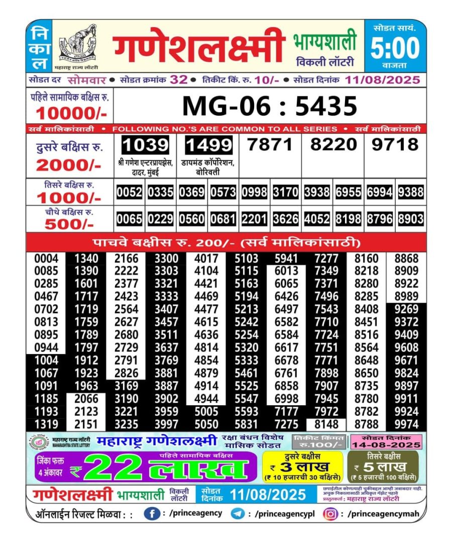 Maharashtra Ganeshlaxmi Lottery Result Today 5 PM (11-08-2025) Leave a Comment on Maharashtra Ganeshlaxmi Lottery Result Today 5 PM (11-08-2025) Posted in Lottery Sambad Results Share: TwitterFacebookPinterestRedditVKDiggLinkedinMix Related Results 0 54 Maharashtra Gajraj Monthly Lottery Result Today (24-06-2025) Maharashtra Gajraj Monthly Lottery Result Today (24-06-2025) Maharashtra Gajraj Monthly Lottery Result Today (24-06-2025) Maharashtra Gajraj Monthly Lottery Result Today (24-06-2025) Maharashtra Gajraj Monthly Lottery Result Today (24-06-2025) 0 21 Maharashtra Lottery Result Today 4.15 PM (01-10-2025) Maharashtra Lottery Result Today 4.15 PM (01-10-2025) Maharashtra Lottery Result Today 4.15 PM (01-10-2025) Maharashtra Lottery Result Today 4.15 PM (01-10-2025) Maharashtra Lottery Result Today 4.15 PM (01-10-2025) 0 66 Arunachal State Dear 10 Lottery Result Today 1.30 PM 31-05-2025 Arunachal State Dear 10 Lottery Result Today 1.30 PM 31-05-2025 Arunachal State Dear 10 Lottery Result Today 1.30 PM 31-05-2025 Arunachal State Dear 10 Lottery Result Today 1.30 PM 31-05-2025 Arunachal State Dear 10 Lottery Result Today 1.30 PM 31-05-2025 0 92 Goa State Rajshree 50 Lottery Result Today 7.30 PM 30-04-2025 Goa State Rajshree 50 Lottery Result Today 7.30 PM 30-04-2025 Goa State Rajshree 50 Lottery Result Today 7.30 PM 30-04-2025 Goa State Rajshree 50 Lottery Result Today 7.30 PM 30-04-2025 Goa State Rajshree 50 Lottery Result Today 7.30 PM 30-04-2025