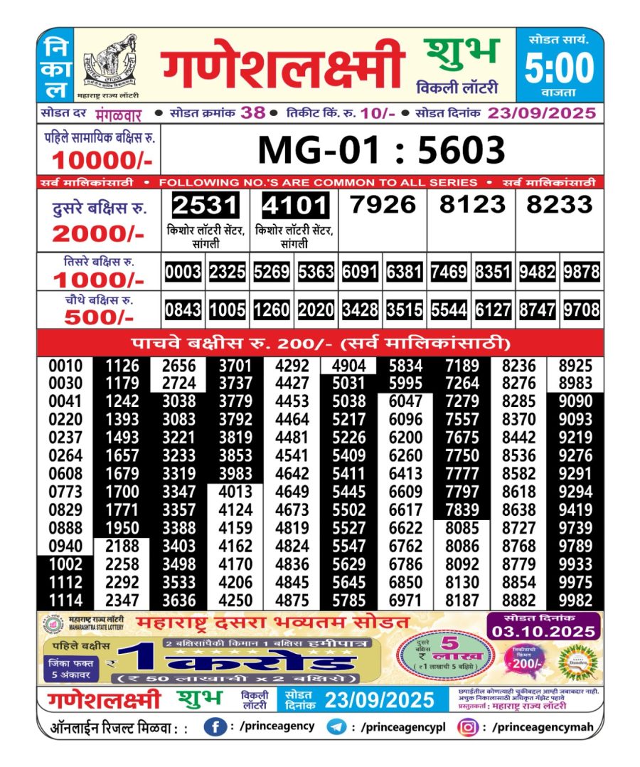 Maharashtra Ganeshlaxmi Lottery Result Today 5 PM (23-09-2025) Leave a Comment on Maharashtra Ganeshlaxmi Lottery Result Today 5 PM (23-09-2025) Posted in Lottery Sambad Results Share: TwitterFacebookPinterestRedditVKDiggLinkedinMix Related Results 0 61 Maharashtra Ganesh Laxmi Lottery Result Today 5 PM (27-06-2025) Maharashtra Ganesh Laxmi Lottery Result Today 5 PM (27-06-2025) Maharashtra Ganesh Laxmi Lottery Result Today 5 PM (27-06-2025) Maharashtra Ganesh Laxmi Lottery Result Today 5 PM (27-06-2025) Maharashtra Ganesh Laxmi Lottery Result Today 5 PM (27-06-2025) 0 97 Mizoram State Rajshree Lottery Result Today 8 PM 24-04-2025 Mizoram State Rajshree Lottery Result Today 8 PM 24-04-2025 Mizoram State Rajshree Lottery Result Today 8 PM 24-04-2025 Mizoram State Rajshree Lottery Result Today 8 PM 24-04-2025 Mizoram State Rajshree Lottery Result Today 8 PM 24-04-2025 0 79 Nagaland State Dear Lottery Result Today 1 PM 17-05-2025 Nagaland State Dear Lottery Result Today 1 PM 17-05-2025 Nagaland State Dear Lottery Result Today 1 PM 17-05-2025 Nagaland State Dear Lottery Result Today 1 PM 17-05-2025 Nagaland State Dear Lottery Result Today 1 PM 17-05-2025 0 21 Mizoram Rajshree Lottery Result Today 1 PM (26-09-2025) Mizoram Rajshree Lottery Result Today 1 PM (26-09-2025) Mizoram Rajshree Lottery Result Today 1 PM (26-09-2025) Mizoram Rajshree Lottery Result Today 1 PM (26-09-2025) Mizoram Rajshree Lottery Result Today 1 PM (26-09-2025)