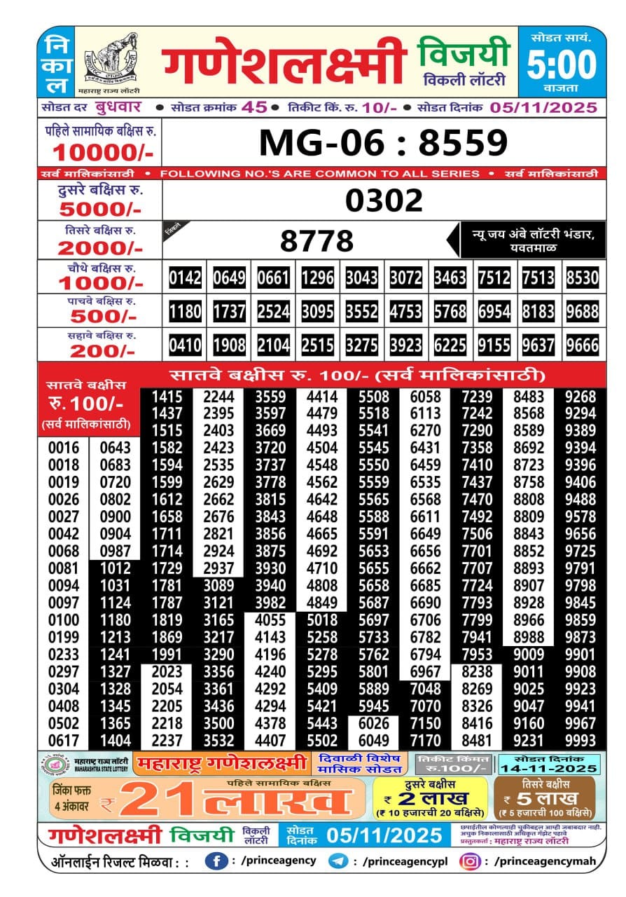 Maharashtra Ganeshlaxmi Lottery Result Today 5PM [05-11-2025] Leave a Comment on Maharashtra Ganeshlaxmi Lottery Result Today 5PM [05-11-2025] Posted in Lottery Sambad Results Share: TwitterFacebookPinterestRedditVKDiggLinkedinMix Related Results 0 88 Punjab Lottery Result Today Dear 10 6 PM 19-06-2025 Punjab Lottery Result Today Dear 10 6 PM 19-06-2025 Punjab Lottery Result Today Dear 10 6 PM 19-06-2025 Punjab Lottery Result Today Dear 10 6 PM 19-06-2025 Punjab Lottery Result Today Dear 10 6 PM 19-06-2025 0 95 Maharashtra Ganesh Laxmi Lottery Result Today 5 PM 15-06-2025 Maharashtra Ganesh Laxmi Lottery Result Today 5 PM 15-06-2025 Maharashtra Ganesh Laxmi Lottery Result Today 5 PM 15-06-2025 Maharashtra Ganesh Laxmi Lottery Result Today 5 PM 15-06-2025 Maharashtra Ganesh Laxmi Lottery Result Today 5 PM 15-06-2025 0 38 Nagaland Dear Lottery Result Today 8 PM (23-10-2025) Nagaland Dear Lottery Result Today 8 PM (23-10-2025) Nagaland Dear Lottery Result Today 8 PM (23-10-2025) Nagaland Dear Lottery Result Today 8 PM (23-10-2025) Nagaland Dear Lottery Result Today 8 PM (23-10-2025) 0 20 Golden Star Lottery Result Today 9PM [15-11-2025] Golden Star Lottery Result Today 9PM [15-11-2025] Golden Star Lottery Result Today 9PM [15-11-2025] Golden Star Lottery Result Today 9PM [15-11-2025] Golden Star Lottery Result Today 9PM [15-11-2025]
