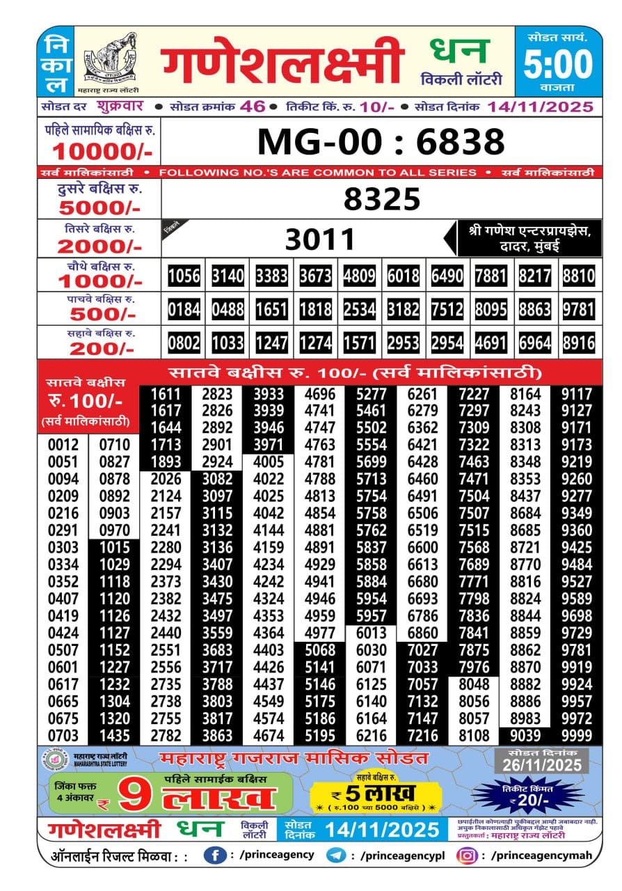 Maharashtra Ganeshlaxmi Lottery Result Today 5PM [14-11-2025] Leave a Comment on Maharashtra Ganeshlaxmi Lottery Result Today 5PM [14-11-2025] Posted in Lottery Sambad Results Share: TwitterFacebookPinterestRedditVKDiggLinkedinMix Related Results 0 90 Maharashtra Ganesh Laxmi Lottery Result Today 5 PM (02-07-2025) Maharashtra Ganesh Laxmi Lottery Result Today 5 PM (02-07-2025) Maharashtra Ganesh Laxmi Lottery Result Today 5 PM (02-07-2025) Maharashtra Ganesh Laxmi Lottery Result Today 5 PM (02-07-2025) Maharashtra Ganesh Laxmi Lottery Result Today 5 PM (02-07-2025) 0 105 Nagaland State Dear Lottery Result Today 8 PM 01-05-2025 Nagaland State Dear Lottery Result Today 8 PM 01-05-2025 Nagaland State Dear Lottery Result Today 8 PM 01-05-2025 Nagaland State Dear Lottery Result Today 8 PM 01-05-2025 Nagaland State Dear Lottery Result Today 8 PM 01-05-2025 0 33 Maharashtra Lottery Result Today 4.15 PM (07-10-2025) Maharashtra Lottery Result Today 4.15 PM (07-10-2025) Maharashtra Lottery Result Today 4.15 PM (07-10-2025) Maharashtra Lottery Result Today 4.15 PM (07-10-2025) Maharashtra Lottery Result Today 4.15 PM (07-10-2025) 0 50 Goa Rajshree 50 Lottery Result Today 7:30 PM (31-08-2025) Goa Rajshree 50 Lottery Result Today 7:30 PM (31-08-2025) Goa Rajshree 50 Lottery Result Today 7:30 PM (31-08-2025) Goa Rajshree 50 Lottery Result Today 7:30 PM (31-08-2025) Goa Rajshree 50 Lottery Result Today 7:30 PM (31-08-2025)