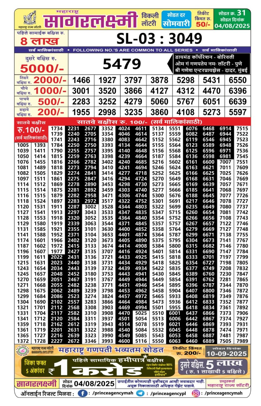 Maharashtra Lottery Result Today 4.15 PM (04-08-2025) Leave a Comment on Maharashtra Lottery Result Today 4.15 PM (04-08-2025) Posted in Lottery Sambad Results Share: TwitterFacebookPinterestRedditVKDiggLinkedinMix Related Results 0 40 Punjab State Dear 50 Lottery Result Today 6 pm (06-08-2025) Punjab State Dear 50 Lottery Result Today 6 pm (06-08-2025) Punjab State Dear 50 Lottery Result Today 6 pm (06-08-2025) Punjab State Dear 50 Lottery Result Today 6 pm (06-08-2025) Punjab State Dear 50 Lottery Result Today 6 pm (06-08-2025) 0 86 Nagaland State Super Lottery Result Today 7 PM 15-05-2025 Nagaland State Super Lottery Result Today 7 PM 15-05-2025 Nagaland State Super Lottery Result Today 7 PM 15-05-2025 Nagaland State Super Lottery Result Today 7 PM 15-05-2025 Nagaland State Super Lottery Result Today 7 PM 15-05-2025 0 72 Nagaland State Dear Lottery Result Today 1 PM Declared 20-06-2025 Nagaland State Dear Lottery Result Today 1 PM Declared 20-06-2025 Nagaland State Dear Lottery Result Today 1 PM Declared 20-06-2025 Nagaland State Dear Lottery Result Today 1 PM Declared 20-06-2025 Nagaland State Dear Lottery Result Today 1 PM Declared 20-06-2025 0 12 Punjab State Dear 50 Lottery Result Today 6 PM (11-10-2025) Punjab State Dear 50 Lottery Result Today 6 PM (11-10-2025) Punjab State Dear 50 Lottery Result Today 6 PM (11-10-2025) Punjab State Dear 50 Lottery Result Today 6 PM (11-10-2025) Punjab State Dear 50 Lottery Result Today 6 PM (11-10-2025)