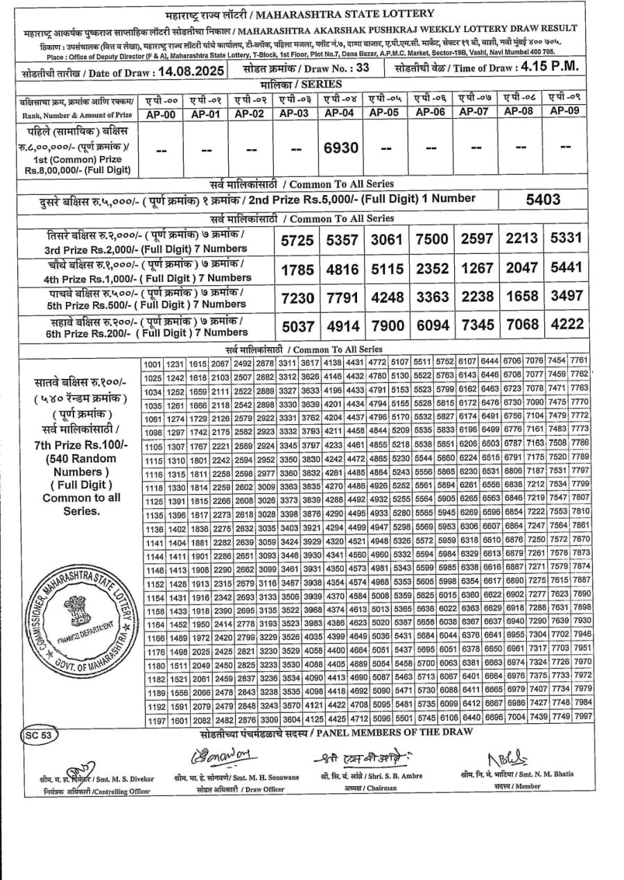 Maharashtra Lottery Result Today 4.15 PM (14-08-2025) Leave a Comment on Maharashtra Lottery Result Today 4.15 PM (14-08-2025) Posted in Lottery Sambad Results Share: TwitterFacebookPinterestRedditVKDiggLinkedinMix Related Results 0 76 Nagaland State Dear Lottery Result Today 8 PM Declared 07-06-2025 Nagaland State Dear Lottery Result Today 8 PM Declared 07-06-2025 Nagaland State Dear Lottery Result Today 8 PM Declared 07-06-2025 Nagaland State Dear Lottery Result Today 8 PM Declared 07-06-2025 Nagaland State Dear Lottery Result Today 8 PM Declared 07-06-2025 0 34 Maharashtra Sahyadri Lottery Result Today 4.30 PM (24-08-2025) Maharashtra Sahyadri Lottery Result Today 4.30 PM (24-08-2025) Maharashtra Sahyadri Lottery Result Today 4.30 PM (24-08-2025) Maharashtra Sahyadri Lottery Result Today 4.30 PM (24-08-2025) Maharashtra Sahyadri Lottery Result Today 4.30 PM (24-08-2025) 0 75 Goa State Rajshree 50 Lottery Result Today 7.30 PM 24-05-2025 Goa State Rajshree 50 Lottery Result Today 7.30 PM 24-05-2025 Goa State Rajshree 50 Lottery Result Today 7.30 PM 24-05-2025 Goa State Rajshree 50 Lottery Result Today 7.30 PM 24-05-2025 Goa State Rajshree 50 Lottery Result Today 7.30 PM 24-05-2025 0 27 Sikkim Dear 10 Lottery Result Today 7 PM (19-09-2025) Sikkim Dear 10 Lottery Result Today 7 PM (19-09-2025) Sikkim Dear 10 Lottery Result Today 7 PM (19-09-2025) Sikkim Dear 10 Lottery Result Today 7 PM (19-09-2025) Sikkim Dear 10 Lottery Result Today 7 PM (19-09-2025)
