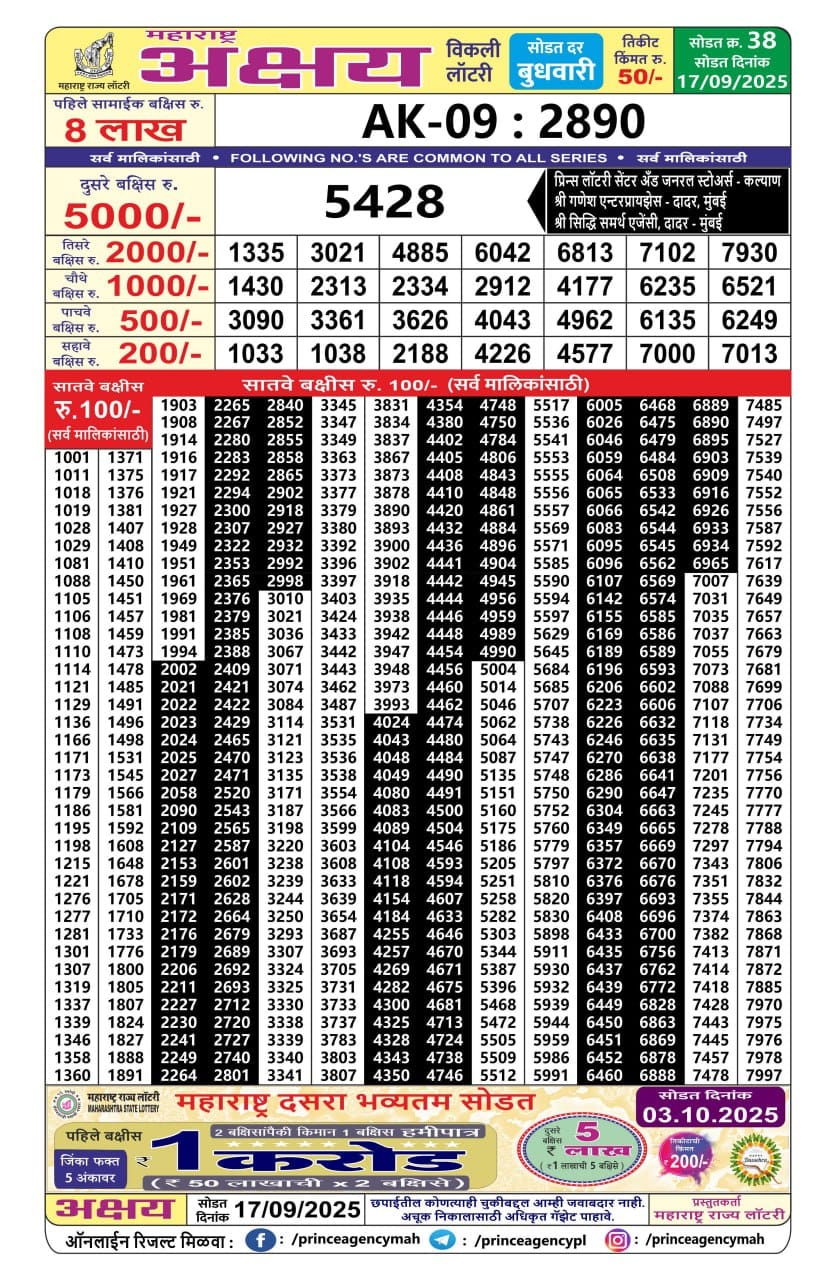 Maharashtra Lottery Result Today 4.15 PM (17-09-2025) Leave a Comment on Maharashtra Lottery Result Today 4.15 PM (17-09-2025) Posted in Lottery Sambad Results Share: TwitterFacebookPinterestRedditVKDiggLinkedinMix Related Results 0 49 Sikkim Dear 10 Lottery Result Today 7 PM (29-07-2025) Sikkim Dear 10 Lottery Result Today 7 PM (29-07-2025) Sikkim Dear 10 Lottery Result Today 7 PM (29-07-2025) Sikkim Dear 10 Lottery Result Today 7 PM (29-07-2025) Sikkim Dear 10 Lottery Result Today 7 PM (29-07-2025) 0 73 Maharashtra Lottery Result Today 4 PM 27-05-2025 Maharashtra Lottery Result Today 4 PM 27-05-2025 Maharashtra Lottery Result Today 4 PM 27-05-2025 Maharashtra Lottery Result Today 4 PM 27-05-2025 Maharashtra Lottery Result Today 4 PM 27-05-2025 0 165 Sikkim State LabhLaxmi Lottery Result Today 4 PM Declared 10-06-2025 Sikkim State LabhLaxmi Lottery Result Today 4 PM Declared 10-06-2025 Sikkim State LabhLaxmi Lottery Result Today 4 PM Declared 10-06-2025 Sikkim State LabhLaxmi Lottery Result Today 4 PM Declared 10-06-2025 Sikkim State LabhLaxmi Lottery Result Today 4 PM Declared 10-06-2025 0 61 Goa Rajshree 10 Evening Lottery Result Today 5:40 PM (11-07-2025) Goa Rajshree 10 Evening Lottery Result Today 5:40 PM (11-07-2025) Goa Rajshree 10 Evening Lottery Result Today 5:40 PM (11-07-2025) Goa Rajshree 10 Evening Lottery Result Today 5:40 PM (11-07-2025) Goa Rajshree 10 Evening Lottery Result Today 5:40 PM (11-07-2025)