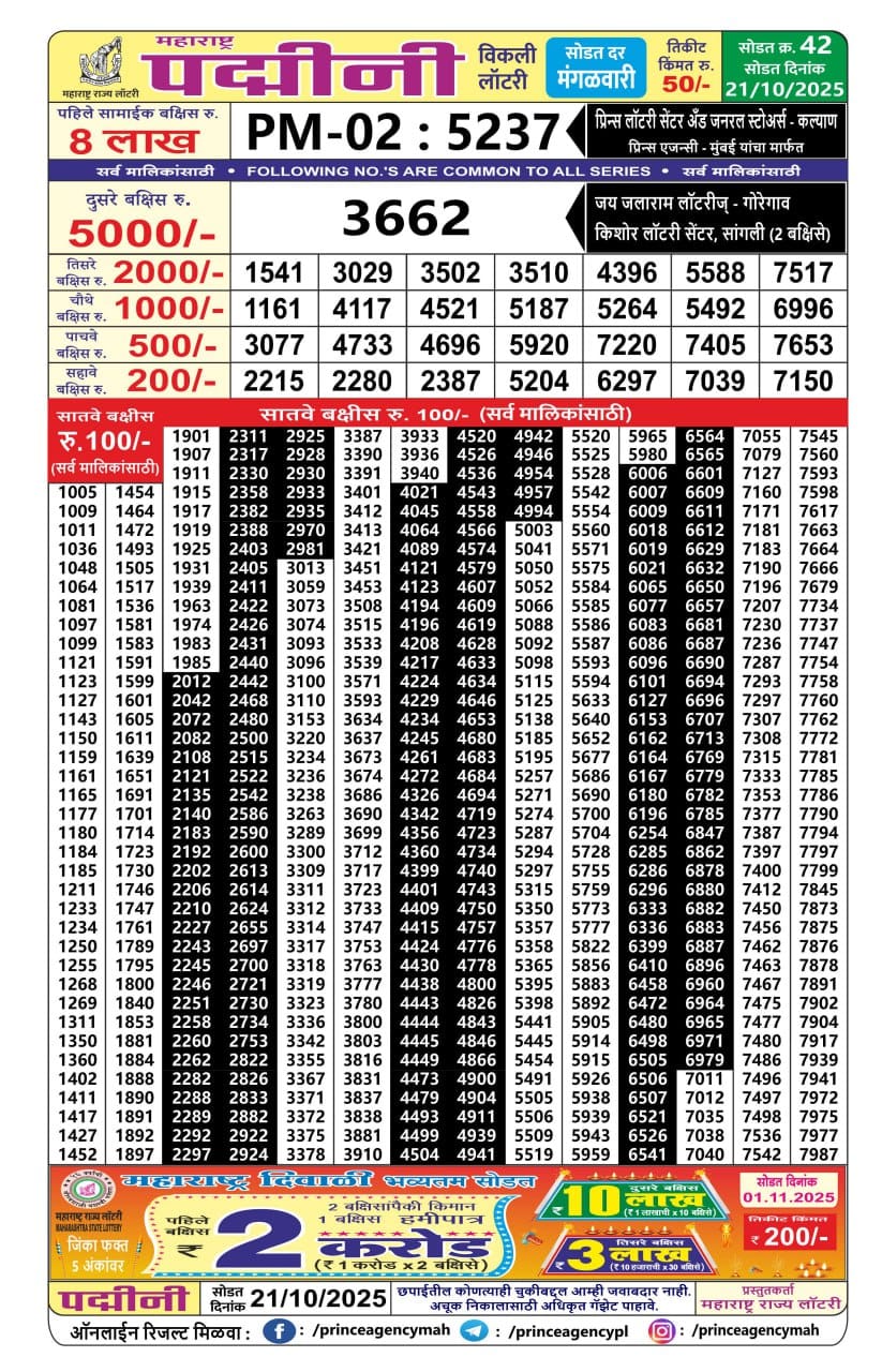 Maharashtra Lottery Result Today 4.15 PM (21-10-2025) Leave a Comment on Maharashtra Lottery Result Today 4.15 PM (21-10-2025) Posted in Lottery Sambad Results Share: TwitterFacebookPinterestRedditVKDiggLinkedinMix Related Results 0 106 Mizoram State Rajshree Lottery Result Today 1 PM 28-04-2025 Mizoram State Rajshree Lottery Result Today 1 PM 28-04-2025 Mizoram State Rajshree Lottery Result Today 1 PM 28-04-2025 Mizoram State Rajshree Lottery Result Today 1 PM 28-04-2025 Mizoram State Rajshree Lottery Result Today 1 PM 28-04-2025 0 36 Maharashtra Ganeshlaxmi Lottery Result Today 5 PM (22-08-2025) Maharashtra Ganeshlaxmi Lottery Result Today 5 PM (22-08-2025) Maharashtra Ganeshlaxmi Lottery Result Today 5 PM (22-08-2025) Maharashtra Ganeshlaxmi Lottery Result Today 5 PM (22-08-2025) Maharashtra Ganeshlaxmi Lottery Result Today 5 PM (22-08-2025) 0 50 Goa Rajshree 30 Lottery Result Today 8:30 PM (27-07-2025) Goa Rajshree 30 Lottery Result Today 8:30 PM (27-07-2025) Goa Rajshree 30 Lottery Result Today 8:30 PM (27-07-2025) Goa Rajshree 30 Lottery Result Today 8:30 PM (27-07-2025) Goa Rajshree 30 Lottery Result Today 8:30 PM (27-07-2025) 0 38 Mizoram Rajshree Lottery Result Today 8 PM (16-08-2025) Mizoram Rajshree Lottery Result Today 8 PM (16-08-2025) Mizoram Rajshree Lottery Result Today 8 PM (16-08-2025) Mizoram Rajshree Lottery Result Today 8 PM (16-08-2025) Mizoram Rajshree Lottery Result Today 8 PM (16-08-2025)
