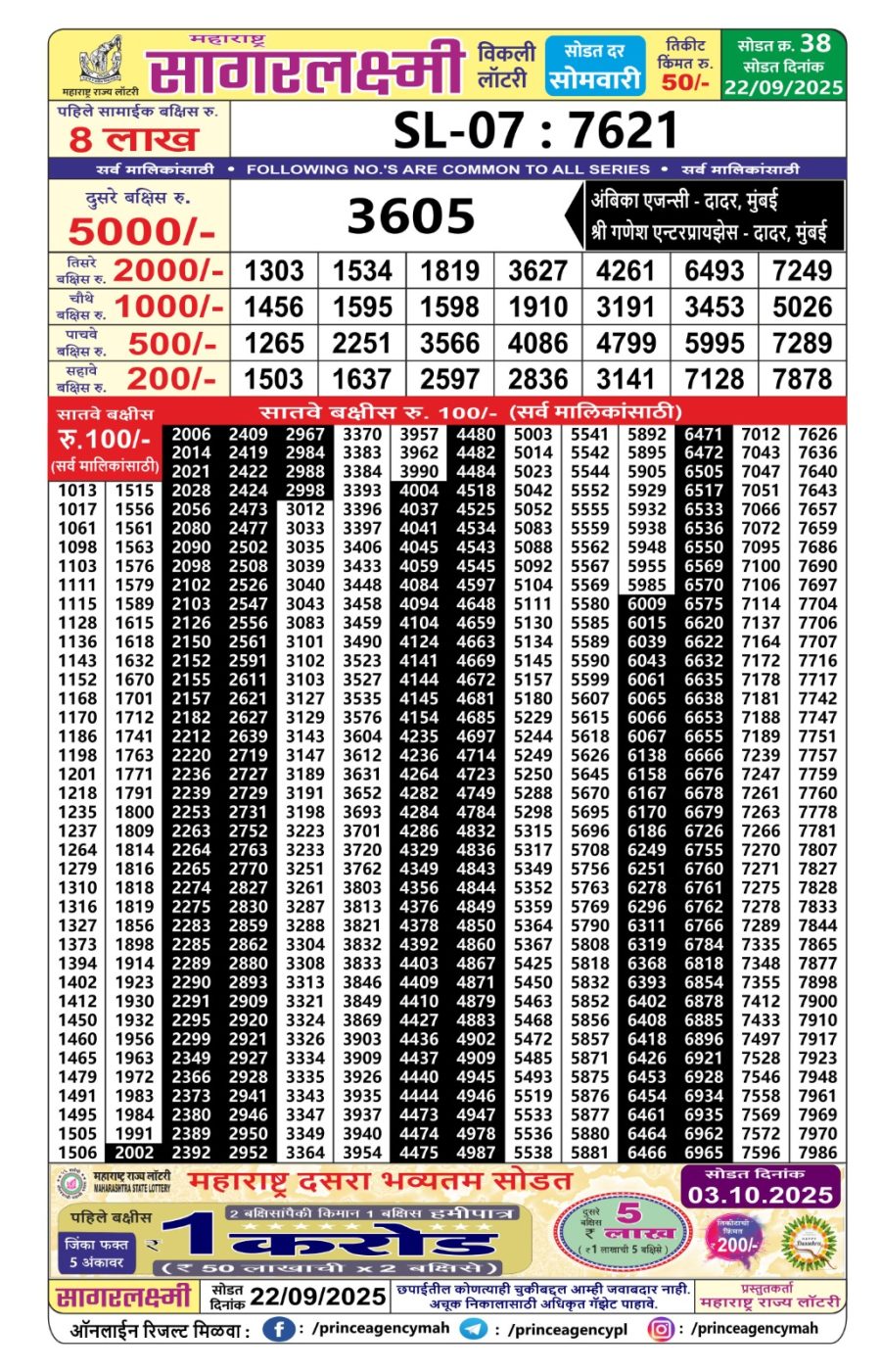 Maharashtra Lottery Result Today 4.15 PM (22-09-2025) Leave a Comment on Maharashtra Lottery Result Today 4.15 PM (22-09-2025) Posted in Lottery Sambad Results Share: TwitterFacebookPinterestRedditVKDiggLinkedinMix Related Results 0 23 Golden Star Lottery Result Today 9 PM (15-09-2025) Golden Star Lottery Result Today 9 PM (15-09-2025) Golden Star Lottery Result Today 9 PM (15-09-2025) Golden Star Lottery Result Today 9 PM (15-09-2025) Golden Star Lottery Result Today 9 PM (15-09-2025) 0 9 Maharashtra Lottery Result Today 4.15 PM (11-10-2025) Maharashtra Lottery Result Today 4.15 PM (11-10-2025) Maharashtra Lottery Result Today 4.15 PM (11-10-2025) Maharashtra Lottery Result Today 4.15 PM (11-10-2025) Maharashtra Lottery Result Today 4.15 PM (11-10-2025) 0 29 Goa Rajshree 50 Lottery Result Today 7:30 PM (24-08-2025) Goa Rajshree 50 Lottery Result Today 7:30 PM (24-08-2025) Goa Rajshree 50 Lottery Result Today 7:30 PM (24-08-2025) Goa Rajshree 50 Lottery Result Today 7:30 PM (24-08-2025) Goa Rajshree 50 Lottery Result Today 7:30 PM (24-08-2025) 0 16 Punjab State Dear 50 Lottery Result Today 6 PM (04-10-2025) Punjab State Dear 50 Lottery Result Today 6 PM (04-10-2025) Punjab State Dear 50 Lottery Result Today 6 PM (04-10-2025) Punjab State Dear 50 Lottery Result Today 6 PM (04-10-2025) Punjab State Dear 50 Lottery Result Today 6 PM (04-10-2025)