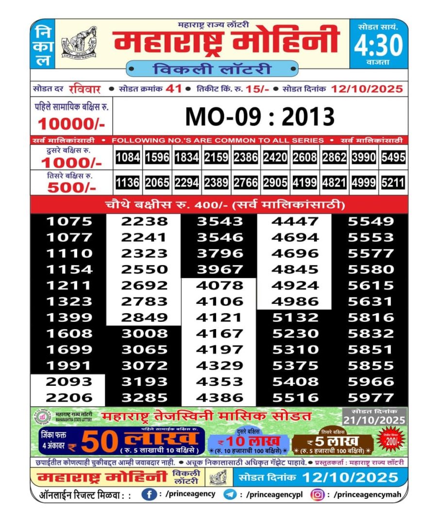 Maharashtra Mohini Lottery Result Today 4.30 PM (12-10-2025) Leave a Comment on Maharashtra Mohini Lottery Result Today 4.30 PM (12-10-2025) Posted in Lottery Sambad Results Share: TwitterFacebookPinterestRedditVKDiggLinkedinMix Related Results 0 23 Mizoram Rajshree Lottery Result Today 1 PM (17-09-2025) Mizoram Rajshree Lottery Result Today 1 PM (17-09-2025) Mizoram Rajshree Lottery Result Today 1 PM (17-09-2025) Mizoram Rajshree Lottery Result Today 1 PM (17-09-2025) Mizoram Rajshree Lottery Result Today 1 PM (17-09-2025) 0 19 Maharashtra Ganeshlaxmi Lottery Result Today 5 PM (20-09-2025) Maharashtra Ganeshlaxmi Lottery Result Today 5 PM (20-09-2025) Maharashtra Ganeshlaxmi Lottery Result Today 5 PM (20-09-2025) Maharashtra Ganeshlaxmi Lottery Result Today 5 PM (20-09-2025) Maharashtra Ganeshlaxmi Lottery Result Today 5 PM (20-09-2025) 0 23 Sikkim Labh Laxmi Lottery Result Today 4 PM (06-09-2025) Sikkim Labh Laxmi Lottery Result Today 4 PM (06-09-2025) Sikkim Labh Laxmi Lottery Result Today 4 PM (06-09-2025) Sikkim Labh Laxmi Lottery Result Today 4 PM (06-09-2025) Sikkim Labh Laxmi Lottery Result Today 4 PM (06-09-2025) 0 21 Goa Rajshree 50 Lottery Result Today 7:30 PM (22-09-2025) Goa Rajshree 50 Lottery Result Today 7:30 PM (22-09-2025) Goa Rajshree 50 Lottery Result Today 7:30 PM (22-09-2025) Goa Rajshree 50 Lottery Result Today 7:30 PM (22-09-2025) Goa Rajshree 50 Lottery Result Today 7:30 PM (22-09-2025)