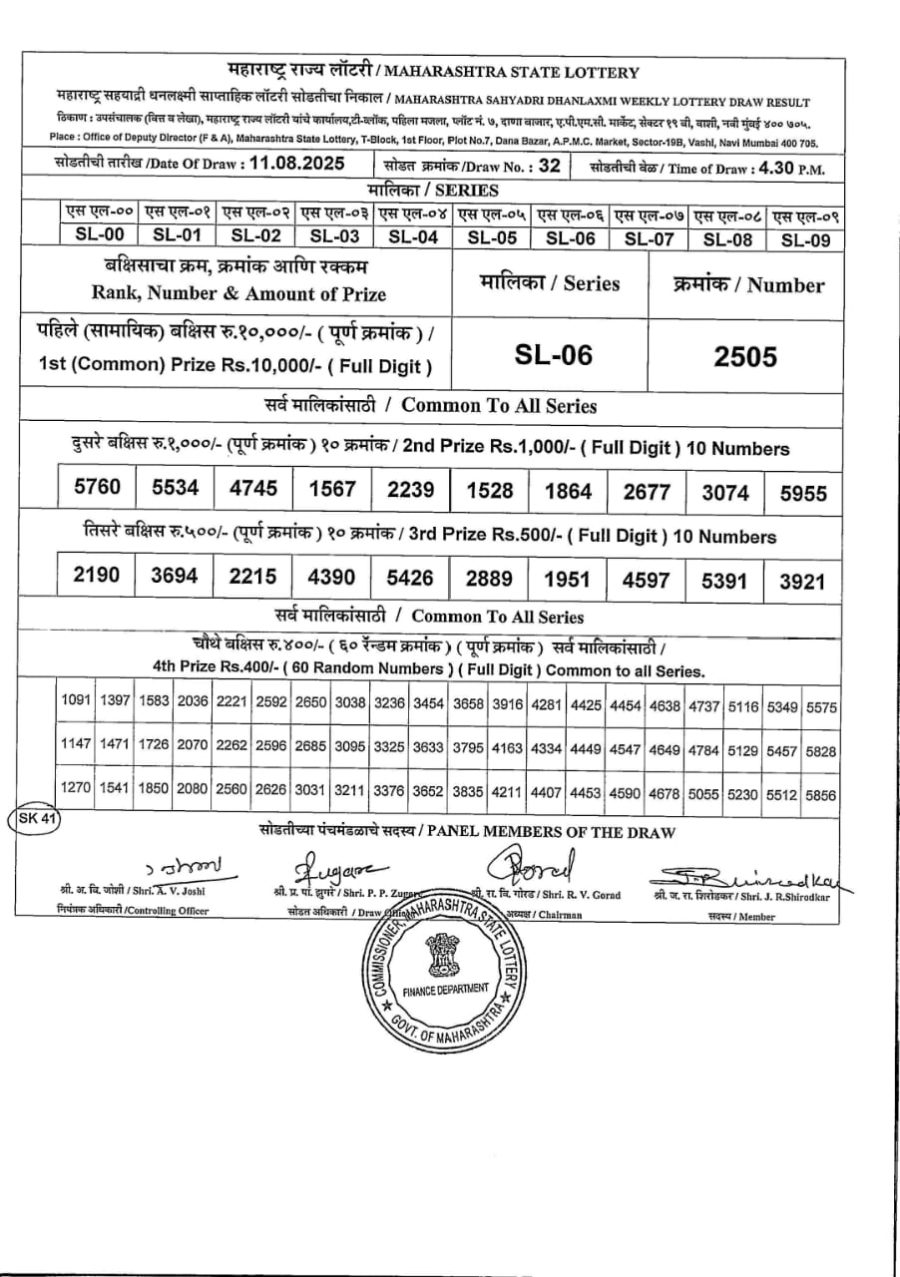 Maharashtra Sahyadri Lottery Result Today 4.30 PM (11-08-2025) Leave a Comment on Maharashtra Sahyadri Lottery Result Today 4.30 PM (11-08-2025) Posted in Lottery Sambad Results Share: TwitterFacebookPinterestRedditVKDiggLinkedinMix Related Results 0 53 Goa Rajshree 30 Lottery Result Today 8:30 PM (16-07-2025) Goa Rajshree 30 Lottery Result Today 8:30 PM (16-07-2025) Goa Rajshree 30 Lottery Result Today 8:30 PM (16-07-2025) Goa Rajshree 30 Lottery Result Today 8:30 PM (16-07-2025) Goa Rajshree 30 Lottery Result Today 8:30 PM (16-07-2025) 0 116 Sikkim State Dear Lottery Result Today 6 PM 4-05-2025 Sikkim State Dear Lottery Result Today 6 PM 4-05-2025 Sikkim State Dear Lottery Result Today 6 PM 4-05-2025 Sikkim State Dear Lottery Result Today 6 PM 4-05-2025 Sikkim State Dear Lottery Result Today 6 PM 4-05-2025 0 74 Nagaland State Super Lottery Result Today 7 PM 15-06-2025 Nagaland State Super Lottery Result Today 7 PM 15-06-2025 Nagaland State Super Lottery Result Today 7 PM 15-06-2025 Nagaland State Super Lottery Result Today 7 PM 15-06-2025 Nagaland State Super Lottery Result Today 7 PM 15-06-2025 0 44 Goa Rajshree 50 Lottery Result Today 7:30 PM (26-07-2025) Goa Rajshree 50 Lottery Result Today 7:30 PM (26-07-2025) Goa Rajshree 50 Lottery Result Today 7:30 PM (26-07-2025) Goa Rajshree 50 Lottery Result Today 7:30 PM (26-07-2025) Goa Rajshree 50 Lottery Result Today 7:30 PM (26-07-2025)