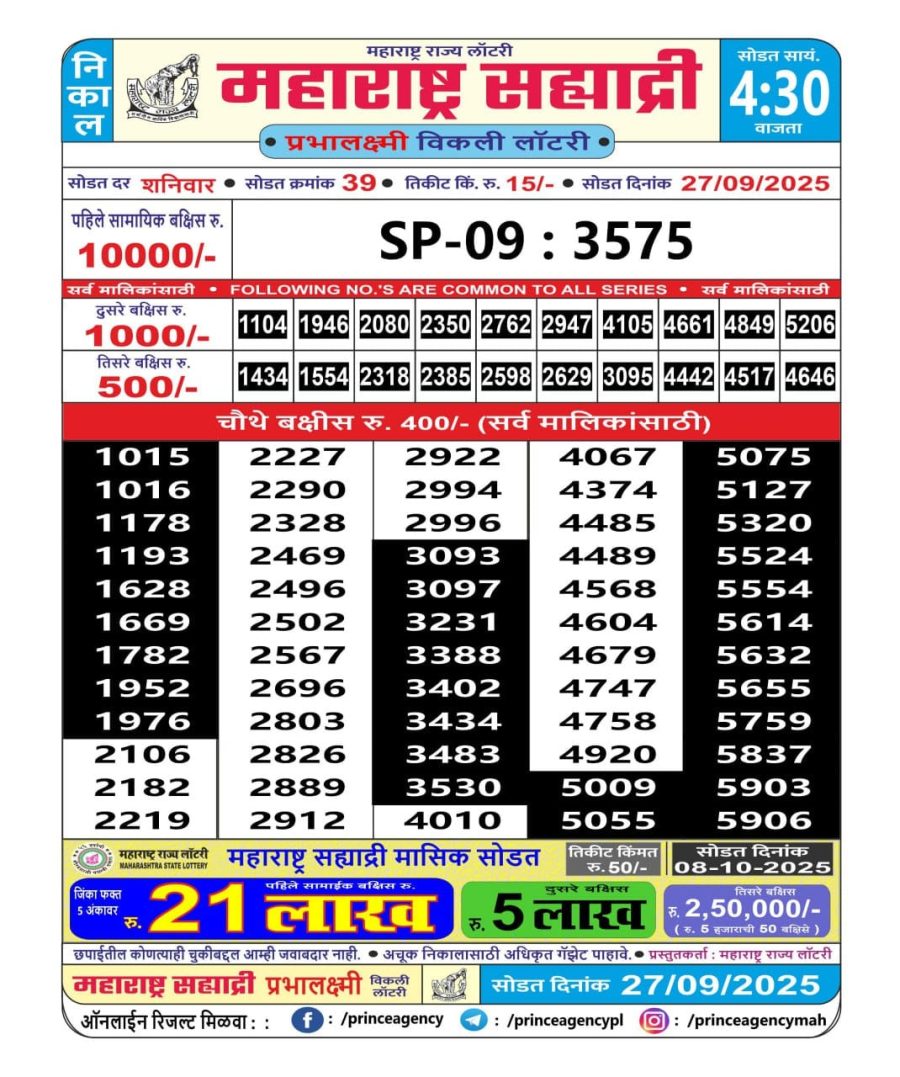Maharashtra Sahyadri Lottery Result Today 4.30 PM (27-09-2025) Leave a Comment on Maharashtra Sahyadri Lottery Result Today 4.30 PM (27-09-2025) Posted in Lottery Sambad Results Share: TwitterFacebookPinterestRedditVKDiggLinkedinMix Related Results 0 58 Sikkim Dear Lottery Result Today 6 PM (01-07-2025) Sikkim Dear Lottery Result Today 6 PM (01-07-2025) Sikkim Dear Lottery Result Today 6 PM (01-07-2025) Sikkim Dear Lottery Result Today 6 PM (01-07-2025) Sikkim Dear Lottery Result Today 6 PM (01-07-2025) 0 23 Mizoram Rajshree Lottery Result Today 1 PM (14-09-2025) Mizoram Rajshree Lottery Result Today 1 PM (14-09-2025) Mizoram Rajshree Lottery Result Today 1 PM (14-09-2025) Mizoram Rajshree Lottery Result Today 1 PM (14-09-2025) Mizoram Rajshree Lottery Result Today 1 PM (14-09-2025) 0 58 Nagaland Super Lottery Result Today 7 PM (02-07-2025) Nagaland Super Lottery Result Today 7 PM (02-07-2025) Nagaland Super Lottery Result Today 7 PM (02-07-2025) Nagaland Super Lottery Result Today 7 PM (02-07-2025) Nagaland Super Lottery Result Today 7 PM (02-07-2025) 0 65 Mizoram Rajshree Lottery Result Today 8 PM (04-07-2025) Mizoram Rajshree Lottery Result Today 8 PM (04-07-2025) Mizoram Rajshree Lottery Result Today 8 PM (04-07-2025) Mizoram Rajshree Lottery Result Today 8 PM (04-07-2025) Mizoram Rajshree Lottery Result Today 8 PM (04-07-2025)