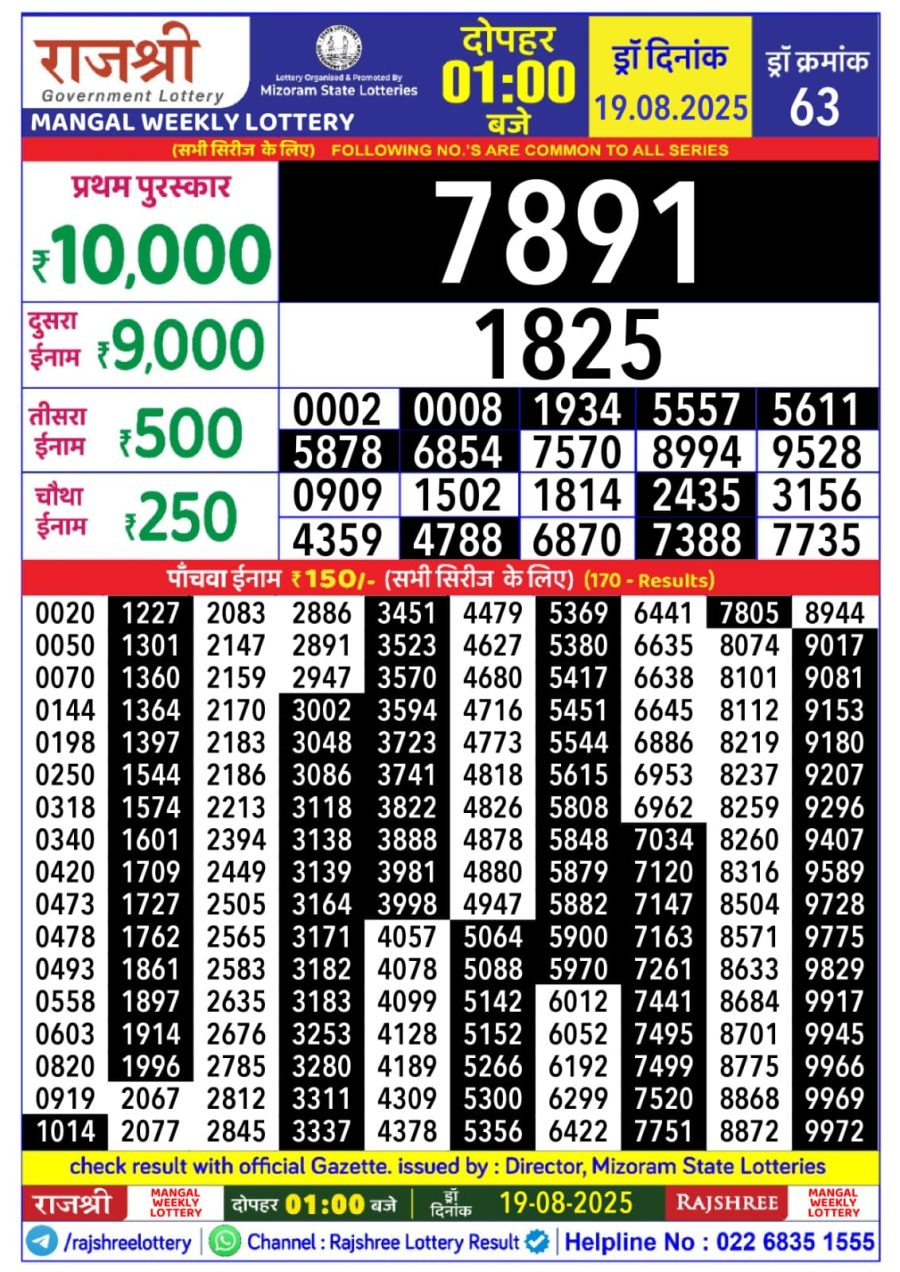 Mizoram Rajshree Lottery Result Today 1 PM (19-08-2025) Leave a Comment on Mizoram Rajshree Lottery Result Today 1 PM (19-08-2025) Posted in Lottery Sambad Results Share: TwitterFacebookPinterestRedditVKDiggLinkedinMix Related Results 0 41 Golden Star Lottery Result Today 9 PM (07-08-2025) Golden Star Lottery Result Today 9 PM (07-08-2025) Golden Star Lottery Result Today 9 PM (07-08-2025) Golden Star Lottery Result Today 9 PM (07-08-2025) Golden Star Lottery Result Today 9 PM (07-08-2025) 0 27 Sikkim Dear 10 Lottery Result Today 7 PM (02-09-2025) Sikkim Dear 10 Lottery Result Today 7 PM (02-09-2025) Sikkim Dear 10 Lottery Result Today 7 PM (02-09-2025) Sikkim Dear 10 Lottery Result Today 7 PM (02-09-2025) Sikkim Dear 10 Lottery Result Today 7 PM (02-09-2025) 0 14 Mizoram Rajshree Lottery Result Today 1 PM (06-10-2025) Mizoram Rajshree Lottery Result Today 1 PM (06-10-2025) Mizoram Rajshree Lottery Result Today 1 PM (06-10-2025) Mizoram Rajshree Lottery Result Today 1 PM (06-10-2025) Mizoram Rajshree Lottery Result Today 1 PM (06-10-2025) 0 79 Mizoram State Rajshree Lottery Result Today 1 PM 14-05-2025 Mizoram State Rajshree Lottery Result Today 1 PM 14-05-2025 Mizoram State Rajshree Lottery Result Today 1 PM 14-05-2025 Mizoram State Rajshree Lottery Result Today 1 PM 14-05-2025 Mizoram State Rajshree Lottery Result Today 1 PM 14-05-2025
