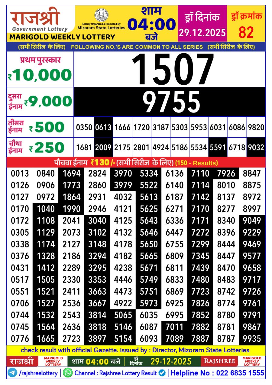 Mizoram Rajshree Lottery Result Today 4PM [29-12-2025] Leave a Comment on Mizoram Rajshree Lottery Result Today 4PM [29-12-2025] Posted in Lottery Sambad Results Share: TwitterFacebookPinterestRedditVKDiggLinkedinMix Related Results 0 94 Arunachal Dear 10 Lottery Result Today 1:30 PM (15-07-2025) Arunachal Dear 10 Lottery Result Today 1:30 PM (15-07-2025) Arunachal Dear 10 Lottery Result Today 1:30 PM (15-07-2025) Arunachal Dear 10 Lottery Result Today 1:30 PM (15-07-2025) Arunachal Dear 10 Lottery Result Today 1:30 PM (15-07-2025) 0 23 Goa Rajshree 9PM Night Lottery Result Today [24-12-2025] Goa Rajshree 9PM Night Lottery Result Today [24-12-2025] Goa Rajshree 9PM Night Lottery Result Today [24-12-2025] Goa Rajshree 9PM Night Lottery Result Today [24-12-2025] Goa Rajshree 9PM Night Lottery Result Today [24-12-2025] 0 103 Nagaland Dear 50 Lottery Result Today 5 PM (27-06-2025) Nagaland Dear 50 Lottery Result Today 5 PM (27-06-2025) Nagaland Dear 50 Lottery Result Today 5 PM (27-06-2025) Nagaland Dear 50 Lottery Result Today 5 PM (27-06-2025) Nagaland Dear 50 Lottery Result Today 5 PM (27-06-2025) 0 55 Mizoram Rajshree Lottery Result Today 1 PM (06-10-2025) Mizoram Rajshree Lottery Result Today 1 PM (06-10-2025) Mizoram Rajshree Lottery Result Today 1 PM (06-10-2025) Mizoram Rajshree Lottery Result Today 1 PM (06-10-2025) Mizoram Rajshree Lottery Result Today 1 PM (06-10-2025)