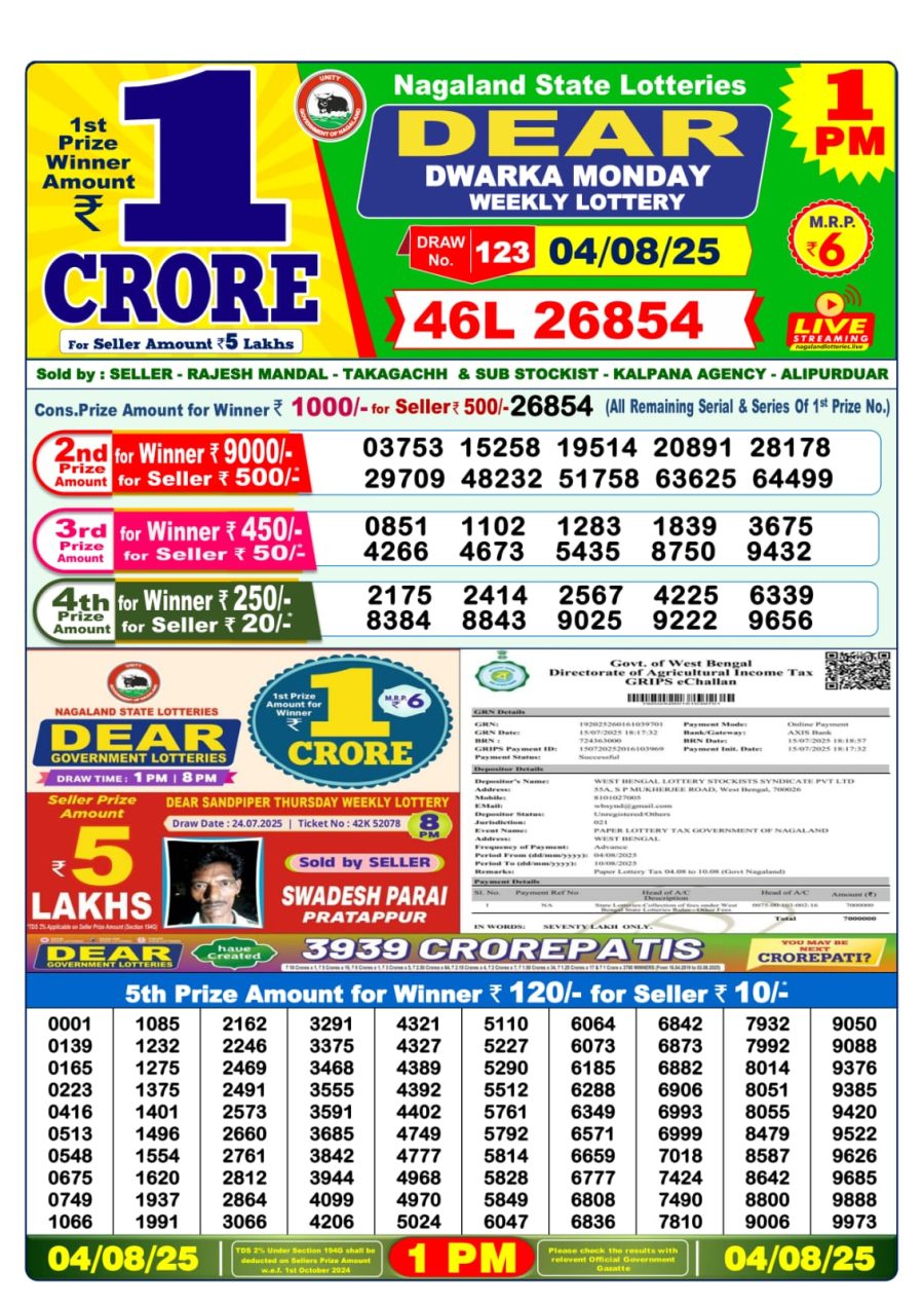 Nagaland Dear Lottery Result Today 1 PM (04-08-2025) Leave a Comment on Nagaland Dear Lottery Result Today 1 PM (04-08-2025) Posted in Lottery Sambad Results Share: TwitterFacebookPinterestRedditVKDiggLinkedinMix Related Results 0 94 Mizoram State Rajshree Lottery Result Today 4 PM 4-05-2025 Mizoram State Rajshree Lottery Result Today 4 PM 4-05-2025 Mizoram State Rajshree Lottery Result Today 4 PM 4-05-2025 Mizoram State Rajshree Lottery Result Today 4 PM 4-05-2025 Mizoram State Rajshree Lottery Result Today 4 PM 4-05-2025 0 33 Sikkim Dear 10 Lottery Result Today 7 PM (28-08-2025) Sikkim Dear 10 Lottery Result Today 7 PM (28-08-2025) Sikkim Dear 10 Lottery Result Today 7 PM (28-08-2025) Sikkim Dear 10 Lottery Result Today 7 PM (28-08-2025) Sikkim Dear 10 Lottery Result Today 7 PM (28-08-2025) 0 77 Nagaland State Super Lottery Result Today 7 PM 18-06-2025 Nagaland State Super Lottery Result Today 7 PM 18-06-2025 Nagaland State Super Lottery Result Today 7 PM 18-06-2025 Nagaland State Super Lottery Result Today 7 PM 18-06-2025 Nagaland State Super Lottery Result Today 7 PM 18-06-2025 0 31 Sikkim Labh Laxmi Lottery Result Today 4 PM (08-08-2025) Sikkim Labh Laxmi Lottery Result Today 4 PM (08-08-2025) Sikkim Labh Laxmi Lottery Result Today 4 PM (08-08-2025) Sikkim Labh Laxmi Lottery Result Today 4 PM (08-08-2025) Sikkim Labh Laxmi Lottery Result Today 4 PM (08-08-2025)