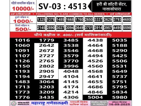 Nagaland Dear Lottery Result Today 8 PM (10-08-2025) Leave a Comment on Nagaland Dear Lottery Result Today 8 PM (10-08-2025) Posted in Lottery Sambad Results Share: TwitterFacebookPinterestRedditVKDiggLinkedinMix Related Results 0 26 Maharashtra Sahyadri Lottery Result Today 4.30 PM (10-09-2025) Maharashtra Sahyadri Lottery Result Today 4.30 PM (10-09-2025) Maharashtra Sahyadri Lottery Result Today 4.30 PM (10-09-2025) Maharashtra Sahyadri Lottery Result Today 4.30 PM (10-09-2025) Maharashtra Sahyadri Lottery Result Today 4.30 PM (10-09-2025) 0 156 Nagaland State Dear Lottery Result Today 1 PM Declared 02-06-2025 Nagaland State Dear Lottery Result Today 1 PM Declared 02-06-2025 Nagaland State Dear Lottery Result Today 1 PM Declared 02-06-2025 Nagaland State Dear Lottery Result Today 1 PM Declared 02-06-2025 Nagaland State Dear Lottery Result Today 1 PM Declared 02-06-2025 0 18 Punjab State Dear 50 Lottery Result Today 6 PM (06-10-2025) Punjab State Dear 50 Lottery Result Today 6 PM (06-10-2025) Punjab State Dear 50 Lottery Result Today 6 PM (06-10-2025) Punjab State Dear 50 Lottery Result Today 6 PM (06-10-2025) Punjab State Dear 50 Lottery Result Today 6 PM (06-10-2025) 0 26 Maharashtra Sahyadri Lottery Result Today 4.30 PM (31-08-2025) Maharashtra Sahyadri Lottery Result Today 4.30 PM (31-08-2025) Maharashtra Sahyadri Lottery Result Today 4.30 PM (31-08-2025) Maharashtra Sahyadri Lottery Result Today 4.30 PM (31-08-2025) Maharashtra Sahyadri Lottery Result Today 4.30 PM (31-08-2025)