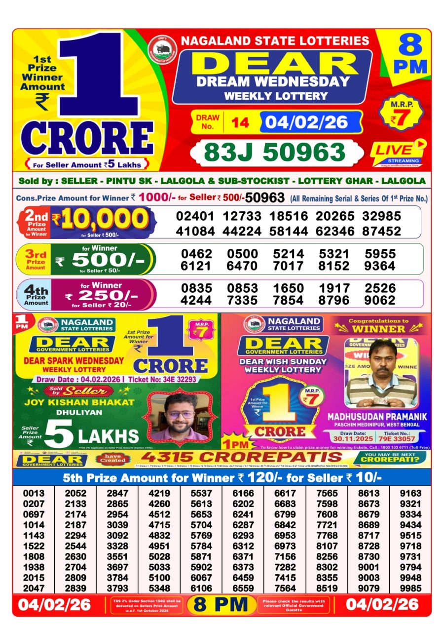Nagaland Dear Lottery Sambad Today 8PM [04-02-2026] Leave a Comment on Nagaland Dear Lottery Sambad Today 8PM [04-02-2026] Posted in Lottery Sambad Results Share: TwitterFacebookPinterestRedditVKDiggLinkedinMix Related Results 0 69 Maharashtra Gajlaxmi Lottery Result Today 4.45 PM (23-08-2025) Maharashtra Gajlaxmi Lottery Result Today 4.45 PM (23-08-2025) Maharashtra Gajlaxmi Lottery Result Today 4.45 PM (23-08-2025) Maharashtra Gajlaxmi Lottery Result Today 4.45 PM (23-08-2025) Maharashtra Gajlaxmi Lottery Result Today 4.45 PM (23-08-2025) 0 71 Nagaland Dear Lottery Result Today 1 PM (20-10-2025) Nagaland Dear Lottery Result Today 1 PM (20-10-2025) Nagaland Dear Lottery Result Today 1 PM (20-10-2025) Nagaland Dear Lottery Result Today 1 PM (20-10-2025) Nagaland Dear Lottery Result Today 1 PM (20-10-2025) 0 120 Nagaland State Dear Lottery Result Today 1 PM Declared 30-05-2025 Nagaland State Dear Lottery Result Today 1 PM Declared 30-05-2025 Nagaland State Dear Lottery Result Today 1 PM Declared 30-05-2025 Nagaland State Dear Lottery Result Today 1 PM Declared 30-05-2025 Nagaland State Dear Lottery Result Today 1 PM Declared 30-05-2025 0 21 Rajshree 500 Monthly Lottery Result [13-01-2026] Rajshree 500 Monthly Lottery Result [13-01-2026] Rajshree 500 Monthly Lottery Result [13-01-2026] Rajshree 500 Monthly Lottery Result [13-01-2026] Rajshree 500 Monthly Lottery Result [13-01-2026]