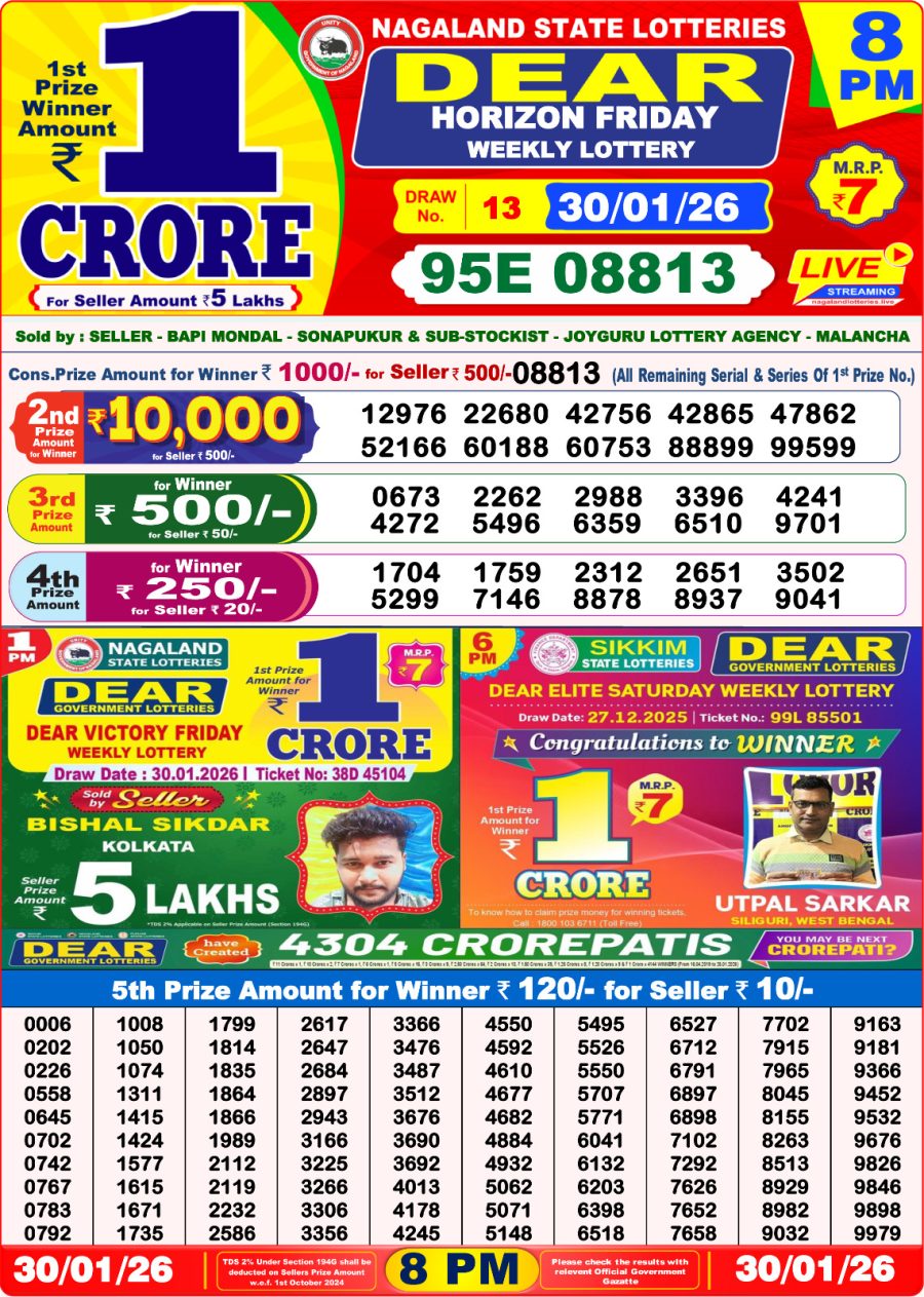 Nagaland Dear Lottery Sambad Today 8PM [30-01-2026] Leave a Comment on Nagaland Dear Lottery Sambad Today 8PM [30-01-2026] Posted in Lottery Sambad Results Share: TwitterFacebookPinterestRedditVKDiggLinkedinMix Related Results 0 311 Goa State Rajshree 30 Lottery Result Today 8.30 PM 10-06-2025 Goa State Rajshree 30 Lottery Result Today 8.30 PM 10-06-2025 Goa State Rajshree 30 Lottery Result Today 8.30 PM 10-06-2025 Goa State Rajshree 30 Lottery Result Today 8.30 PM 10-06-2025 Goa State Rajshree 30 Lottery Result Today 8.30 PM 10-06-2025 0 4 Punjab State Dear 50 Lottery Result Today 6PM [01-02-2026] Punjab State Dear 50 Lottery Result Today 6PM [01-02-2026] Punjab State Dear 50 Lottery Result Today 6PM [01-02-2026] Punjab State Dear 50 Lottery Result Today 6PM [01-02-2026] Punjab State Dear 50 Lottery Result Today 6PM [01-02-2026] 0 16 Goa State Rajshree 10 Evening Lottery Result Today 5.40PM [15-01-2026] Goa State Rajshree 10 Evening Lottery Result Today 5.40PM [15-01-2026] Goa State Rajshree 10 Evening Lottery Result Today 5.40PM [15-01-2026] Goa State Rajshree 10 Evening Lottery Result Today 5.40PM [15-01-2026] Goa State Rajshree 10 Evening Lottery Result Today 5.40PM [15-01-2026] 0 85 Golden Star Lottery Result Today 9 PM (12-10-2025) Golden Star Lottery Result Today 9 PM (12-10-2025) Golden Star Lottery Result Today 9 PM (12-10-2025) Golden Star Lottery Result Today 9 PM (12-10-2025) Golden Star Lottery Result Today 9 PM (12-10-2025)