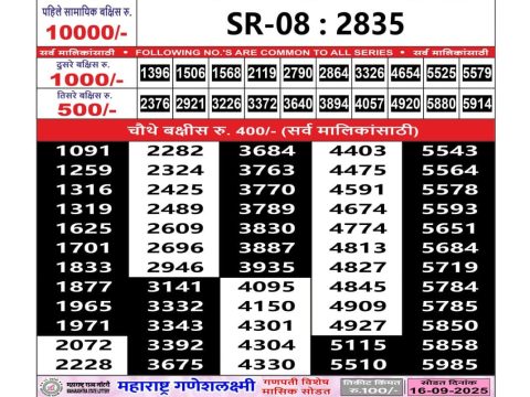 Nagaland State Dear Lottery Result Today 1 PM 1-05-2025 Leave a Comment on Nagaland State Dear Lottery Result Today 1 PM 1-05-2025 Posted in Lottery Sambad Results Share: TwitterFacebookPinterestRedditVKDiggLinkedinMix Related Results 0 84 Goa State Rajshree 10 Evening Lottery Result Today 5.40 PM 10-05-2025 Goa State Rajshree 10 Evening Lottery Result Today 5.40 PM 10-05-2025 Goa State Rajshree 10 Evening Lottery Result Today 5.40 PM 10-05-2025 Goa State Rajshree 10 Evening Lottery Result Today 5.40 PM 10-05-2025 Goa State Rajshree 10 Evening Lottery Result Today 5.40 PM 10-05-2025 0 101 Arunachal State Dear 10 Lottery Result Today 1.30 PM 28-04-2025 Arunachal State Dear 10 Lottery Result Today 1.30 PM 28-04-2025 Arunachal State Dear 10 Lottery Result Today 1.30 PM 28-04-2025 Arunachal State Dear 10 Lottery Result Today 1.30 PM 28-04-2025 Arunachal State Dear 10 Lottery Result Today 1.30 PM 28-04-2025 0 26 Maharashtra Sahyadri Lottery Result Today 4.30 PM (12-09-2025) Maharashtra Sahyadri Lottery Result Today 4.30 PM (12-09-2025) Maharashtra Sahyadri Lottery Result Today 4.30 PM (12-09-2025) Maharashtra Sahyadri Lottery Result Today 4.30 PM (12-09-2025) Maharashtra Sahyadri Lottery Result Today 4.30 PM (12-09-2025) 0 38 Arunachal Dear 10 Lottery Result Today 1:30 PM (13-08-2025) Arunachal Dear 10 Lottery Result Today 1:30 PM (13-08-2025) Arunachal Dear 10 Lottery Result Today 1:30 PM (13-08-2025) Arunachal Dear 10 Lottery Result Today 1:30 PM (13-08-2025) Arunachal Dear 10 Lottery Result Today 1:30 PM (13-08-2025)