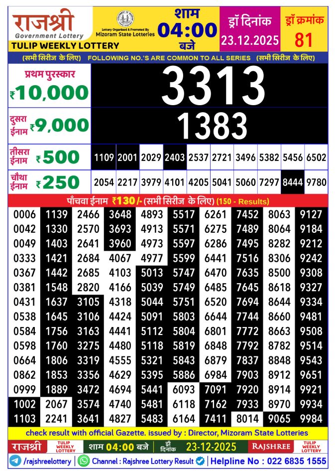 Mizoram Rajshree Lottery Result Today 4PM [23-12-2025]