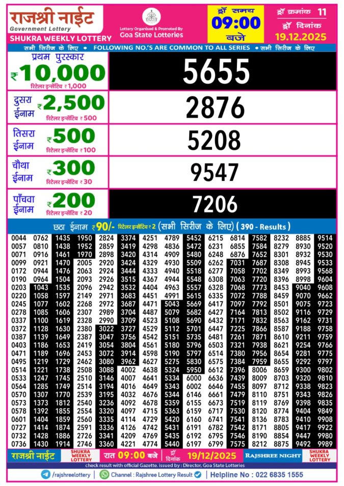 Goa Rajshree 9PM Night Lottery Result Today [19-12-2025]