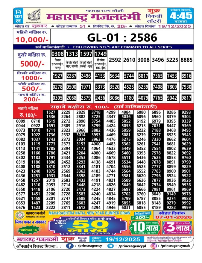 Maharashtra Gajlaxmi Lottery Result [19-12-2025]