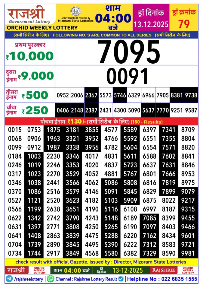 Mizoram Rajshree Lottery Result Today 4PM [13-12-2025]