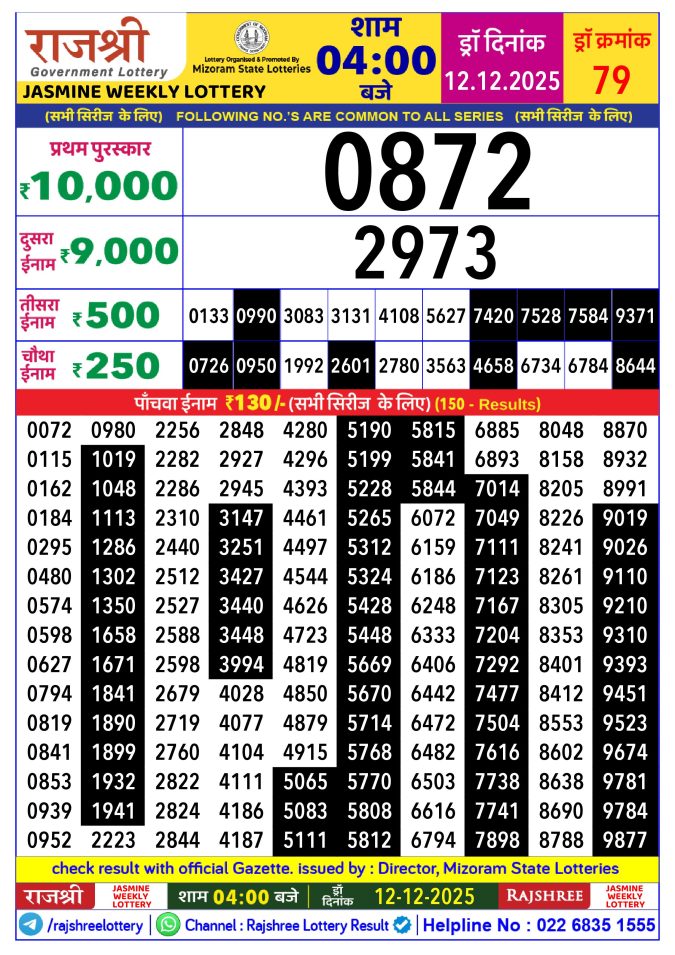 Mizoram Rajshree Lottery Result Today 4PM [12-12-2025]