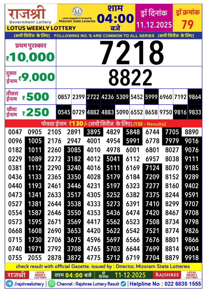 Mizoram Rajshree Lottery Result Today 4PM [11-12-2025]