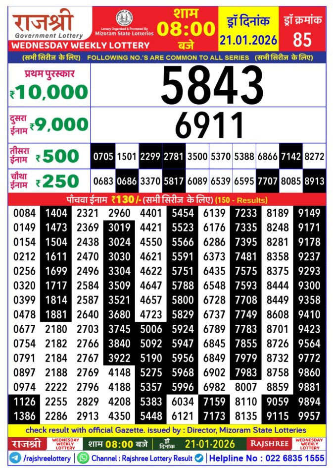 Mizoram Rajshree Lottery Result Today 4PM [21-01-2026]