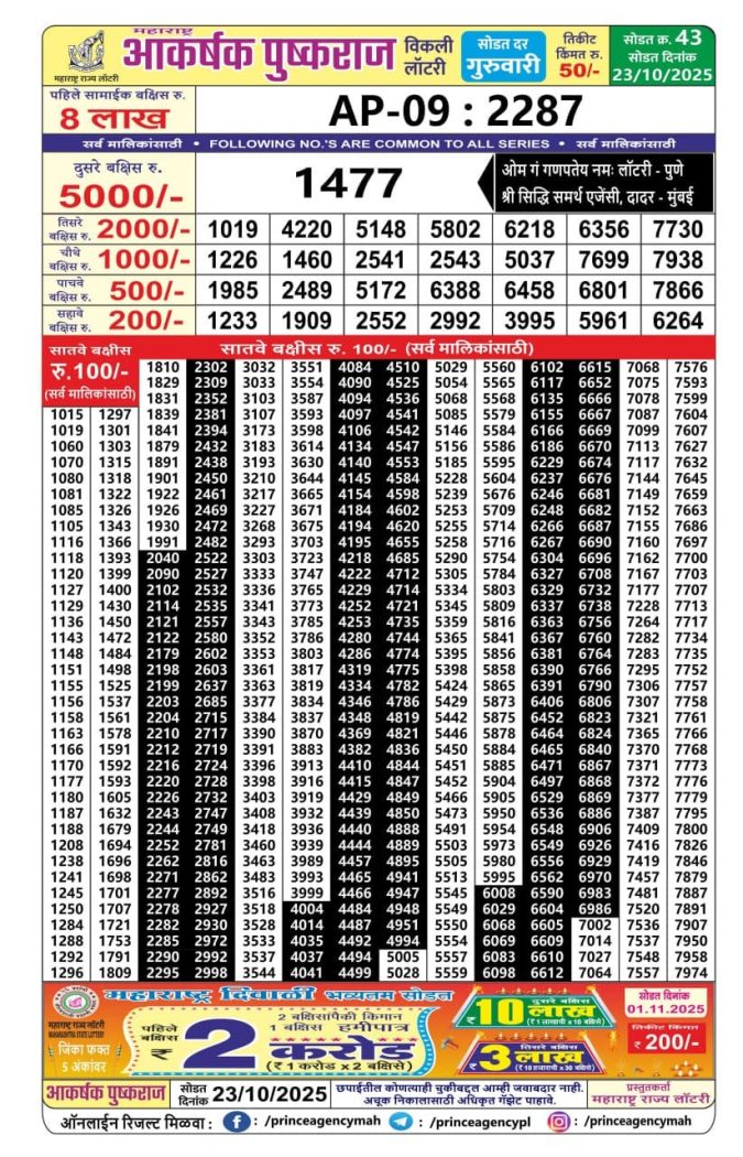 Maharashtra Lottery Result Today 4.15 PM (23-10-2025)