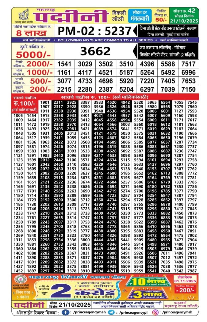 Maharashtra Lottery Result Today 4.15 PM (21-10-2025)