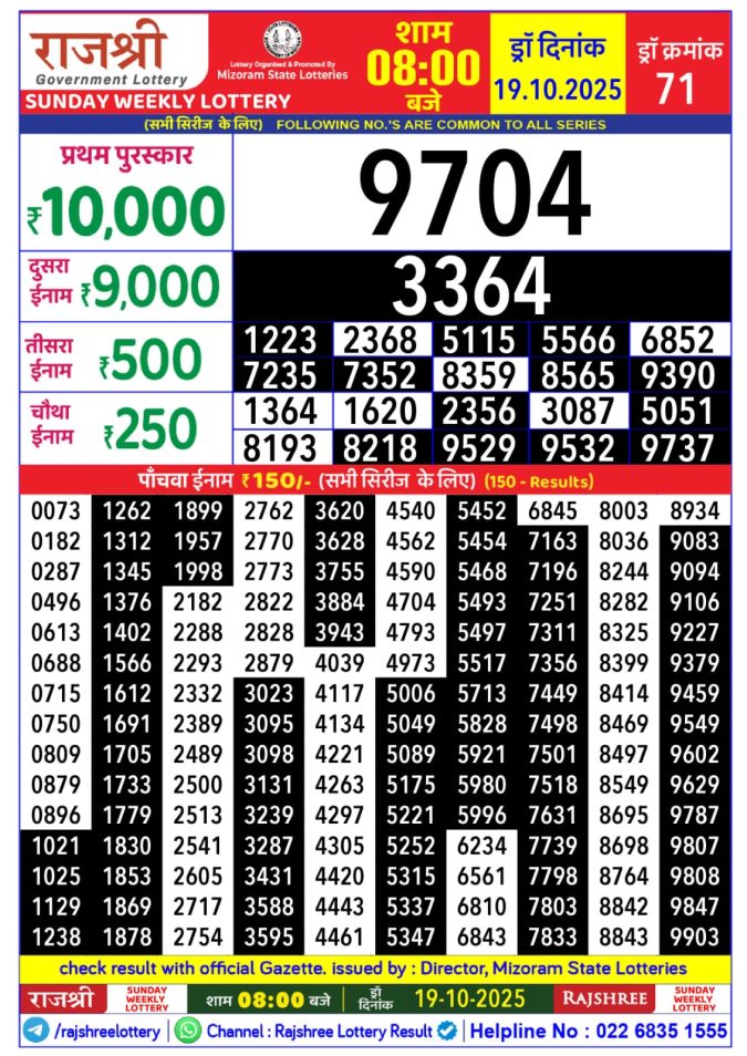 Mizoram Rajshree Lottery Result Today 4 PM (19-10-2025)