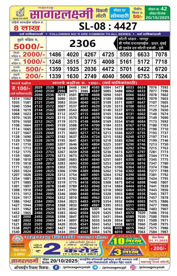 Maharashtra Lottery Result Today 4.15 PM (20-10-2025)