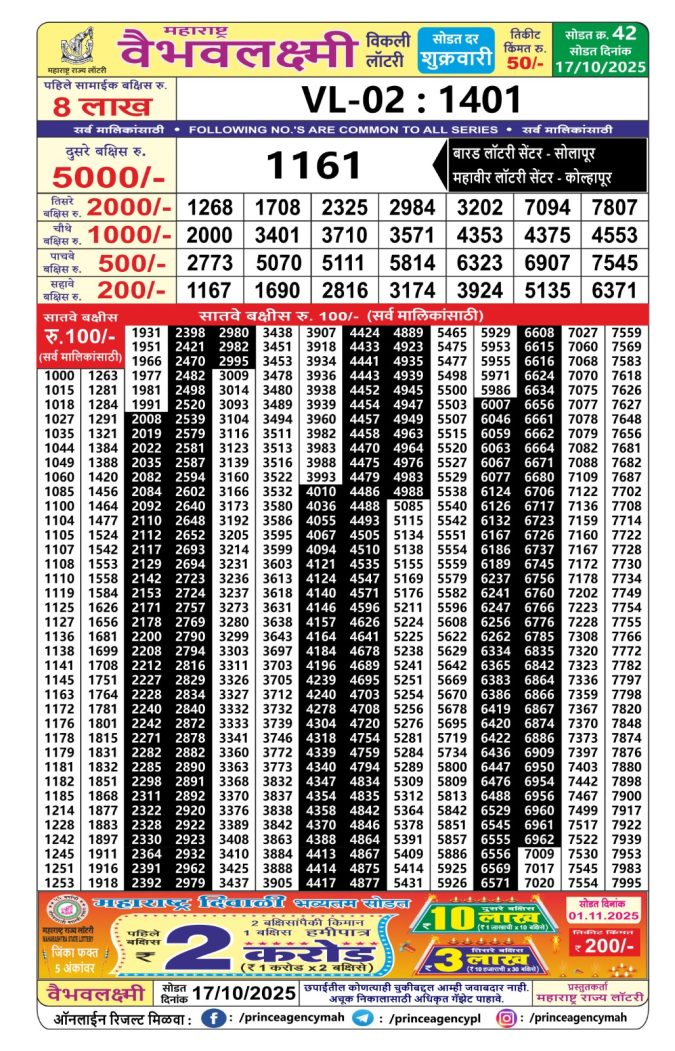 Maharashtra Lottery Result Today 4.15 PM (17-10-2025)