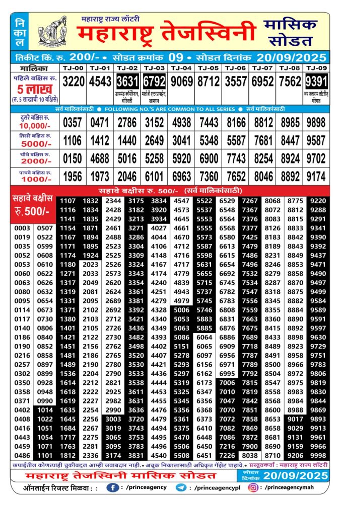 Maharashtra Lottery Result Today 4.15 PM (20-09-2025)