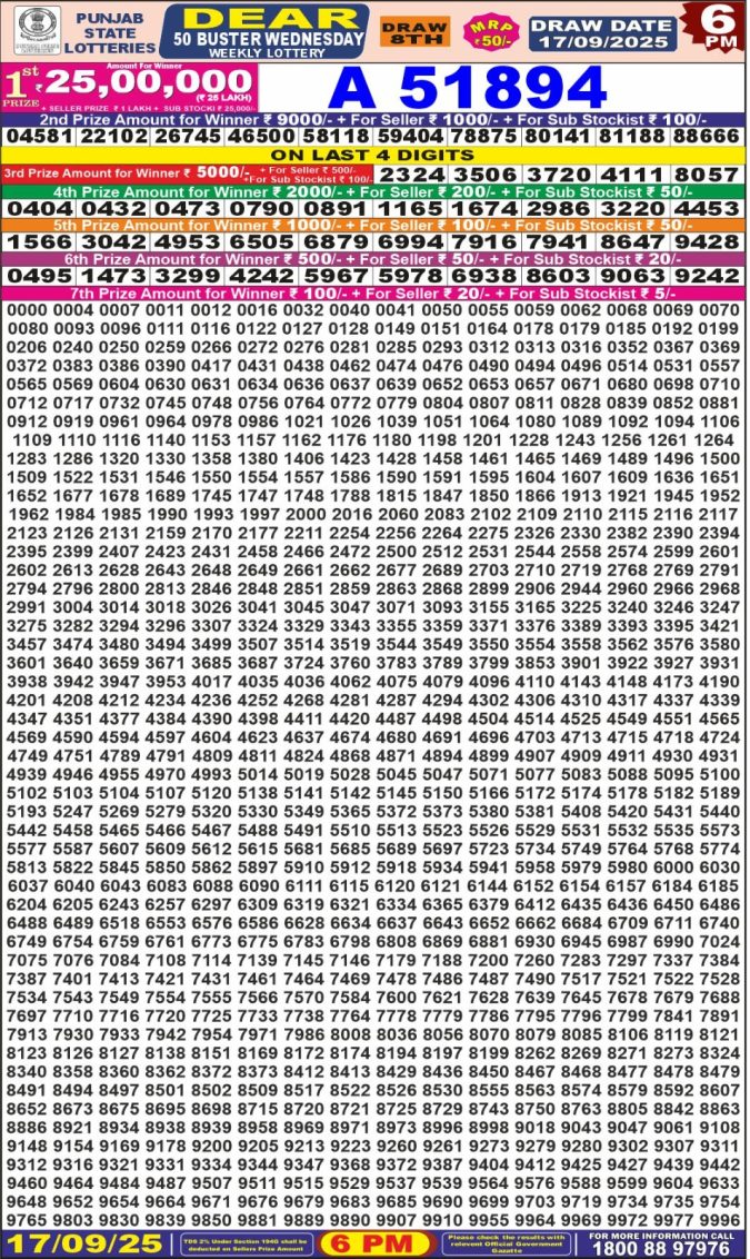 Punjab State Dear 50 Lottery Result Today 6 PM (17-09-2025)