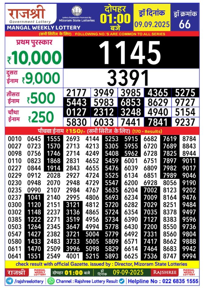 Mizoram Rajshree Lottery Result Today 1 PM (09-09-2025)
