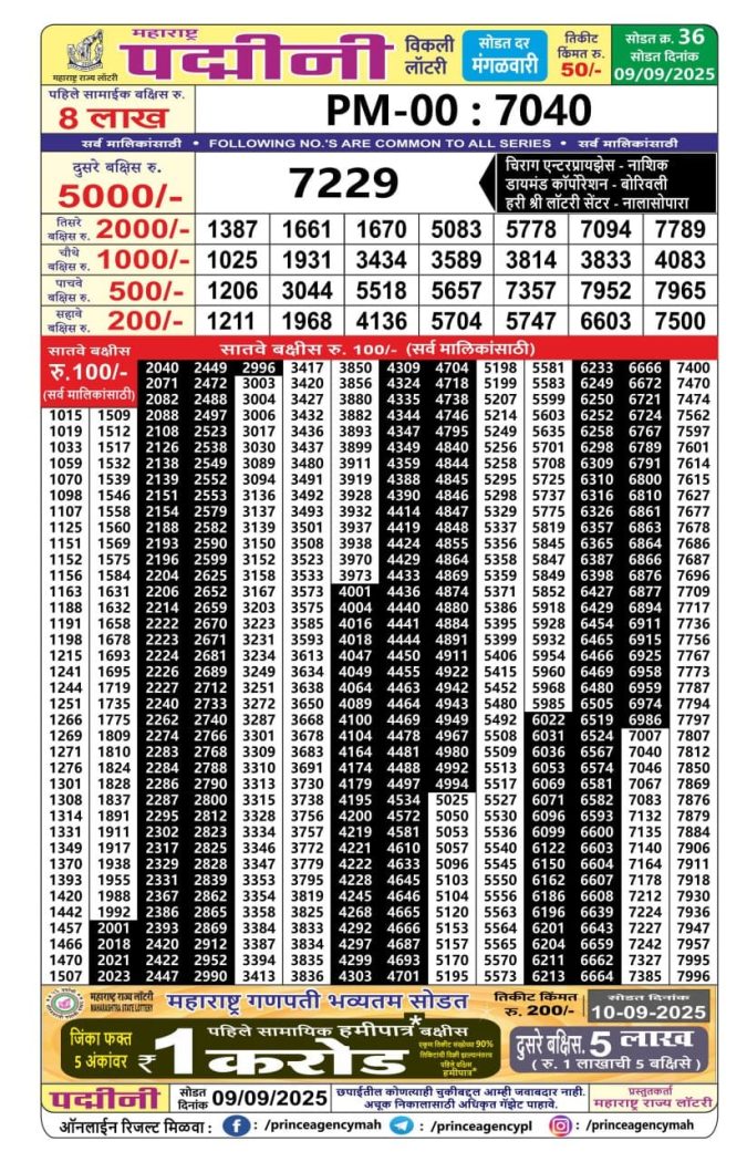 Maharashtra Lottery Result Today 4.15 PM (09-09-2025)